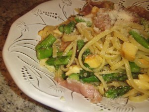 The only change I made in the dish was a sautéed the asparagus and garlic while the pasta was boiling. I would much rather do this than deal with an ice bath. Also, I used just half of the mozzarella because I’m not crazy about all the smoke.