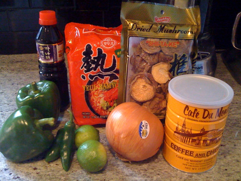 This brings us to the Super G Mart where everyday is Triple Coupon Day without the Coupons!  Yesterday I was in need of a new bottle of fish sauce and thought a trip to the Super G was a great field trip for a rainy Sunday. I found limes 5 for a dollar, a variety of peppers and onions, Cafe Du Monde for less than $5 (it’s over $10 at Earth Fare), the spicy ramen I’ve been searching for (stay tuned for an upcoming Spicy Ramen test kitchen), dried shiitake mushrooms for under $2 and my fish sauce all for around $15!  I don’t recommend the Super G for all your regular grocery shopping but it is a great place to find new ingredients and things you can’t find on the international aisle at Harris Teeter. During the next couple weeks, I’ll be posting some recipes with some more unusual ingredients like fish sauce and red curry paste. If you are interested in making these recipes I highly recommend a trip!