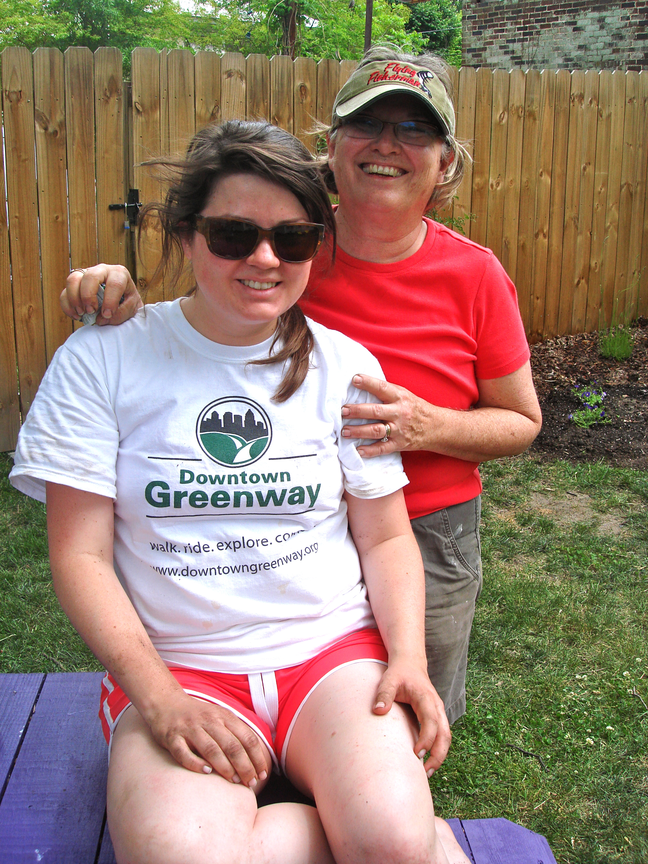 This weekend my Mom and her best friend Debbie came up from Florida to spend the weekend on Mendenhall and the lead the effort in fixing up my garden for a fundraiser I’m hosting next weekend. We spend most of every waking moment in the dirt, mud or at Lowes. Two and a half days, 3 trips to Lowes, 3 visits to New Garden and 36 bags of mulch later we had an end product that could be featured in Better Homes and Garden. My mom and Debbie aren’t professional gardeners but I don’t know if a professional could done a better job and I’m sure a professional couldn’t work harder. They have both vision and the energy to get it done. I’m one lucky girl to have them in my life.