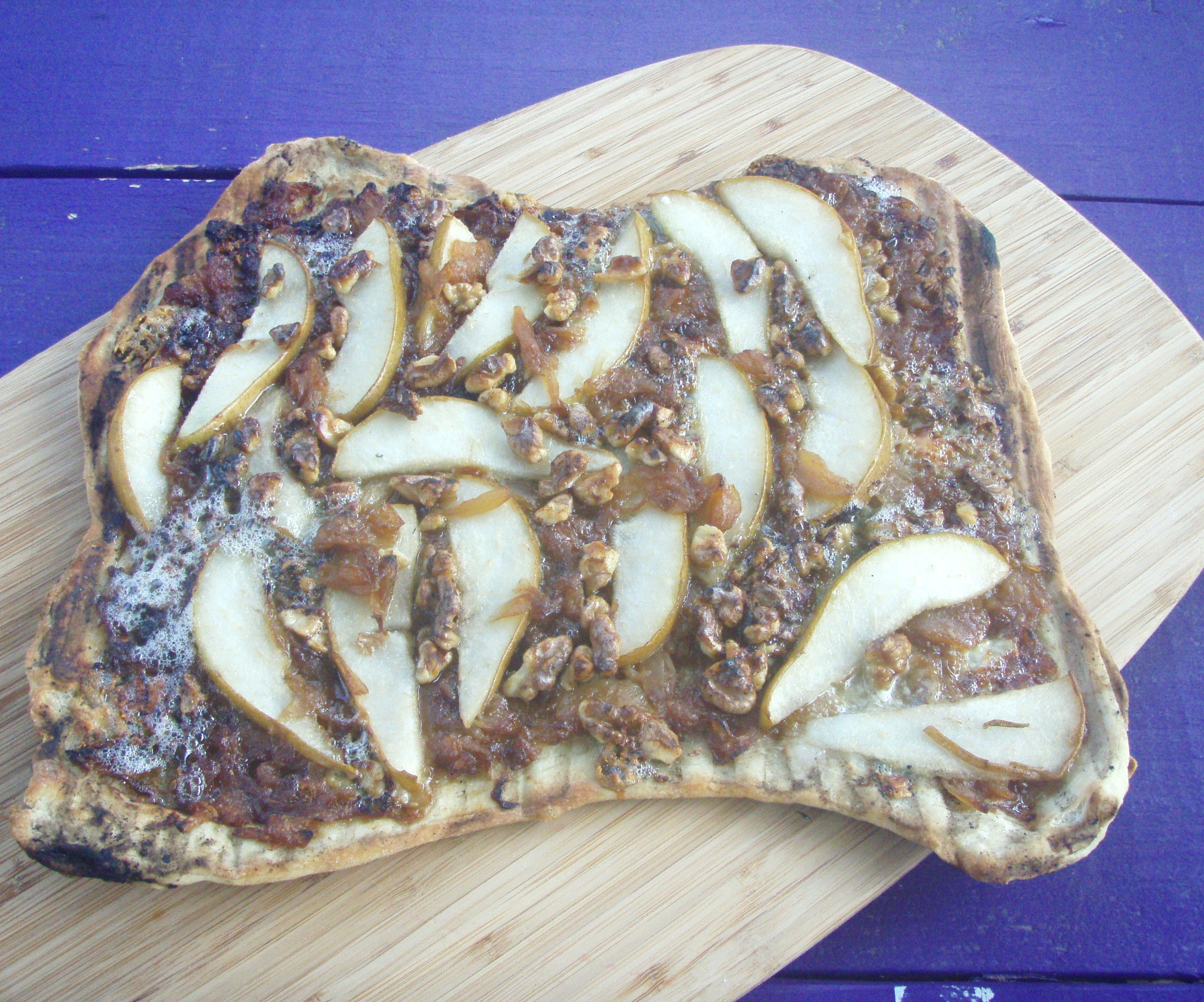Grilled Gorgonzola, Caramelized Onion and Pear Pizza