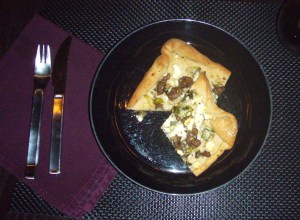 Assembly: Wash leek well. I washed, cut and then soaked in ice water to remove any sand. Saute the leek and scallion in a small amount of olive oil and butter. Season with salt and pepper. Set onion mixture aside. Add a bit more olive oil to the pan and cook the lamb. Break the lamb up into small pieces and cook until brown. Drain the lamb on a plate with a paper towel to remove any grease. Roll out the dough (I’d use a half dough if you don’t use whole wheat) and layer the onion mixture. Add the lamb and crumble feta cheese on top. At this point, I like to add sea salt to the crust. Bake at 400 until the dough is crisp and cheese has slightly melted. Sprinkle the fresh mint on the hot pizza and serve!