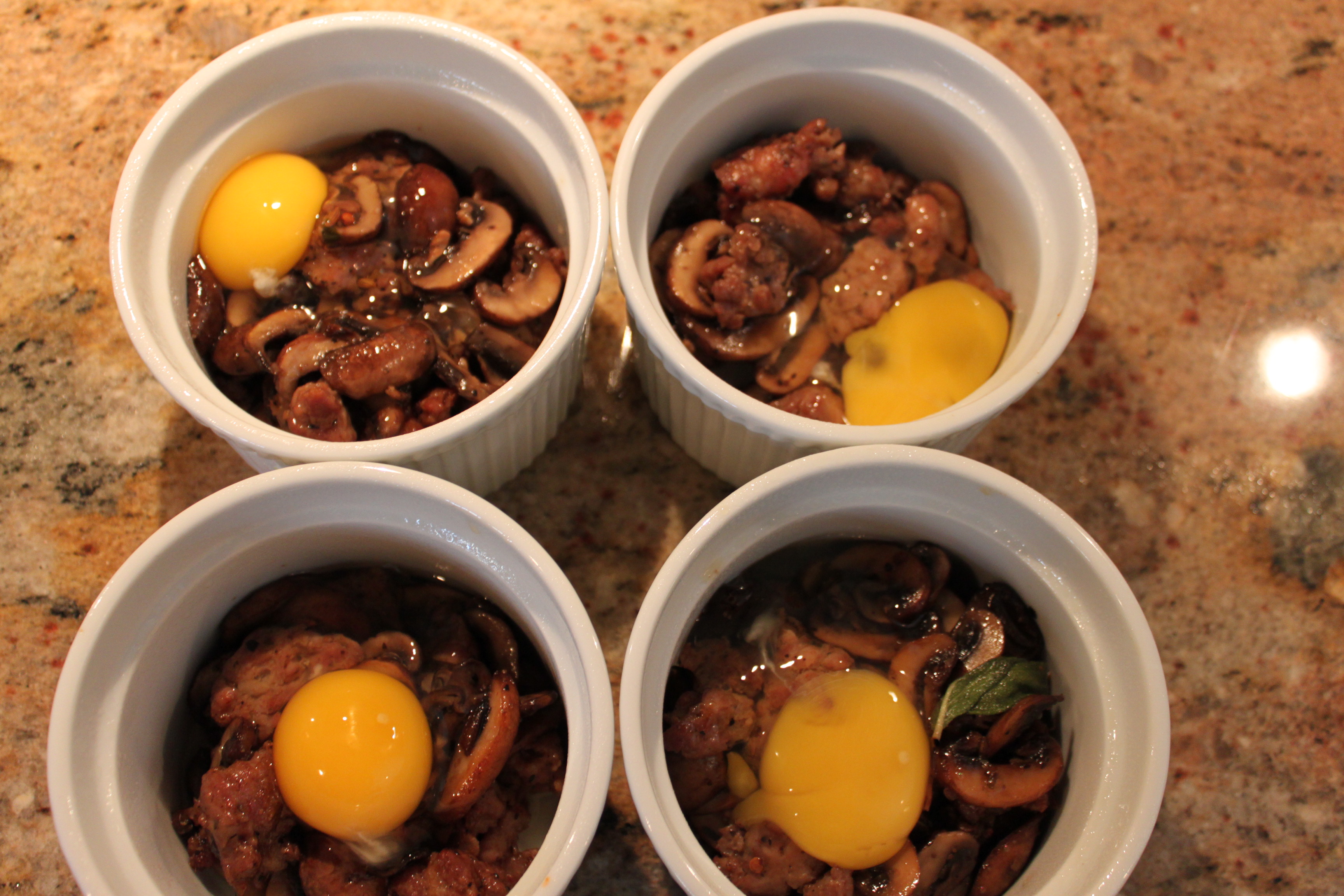 Baked Eggs with Sausage and Mushrooms by Anne Burrell