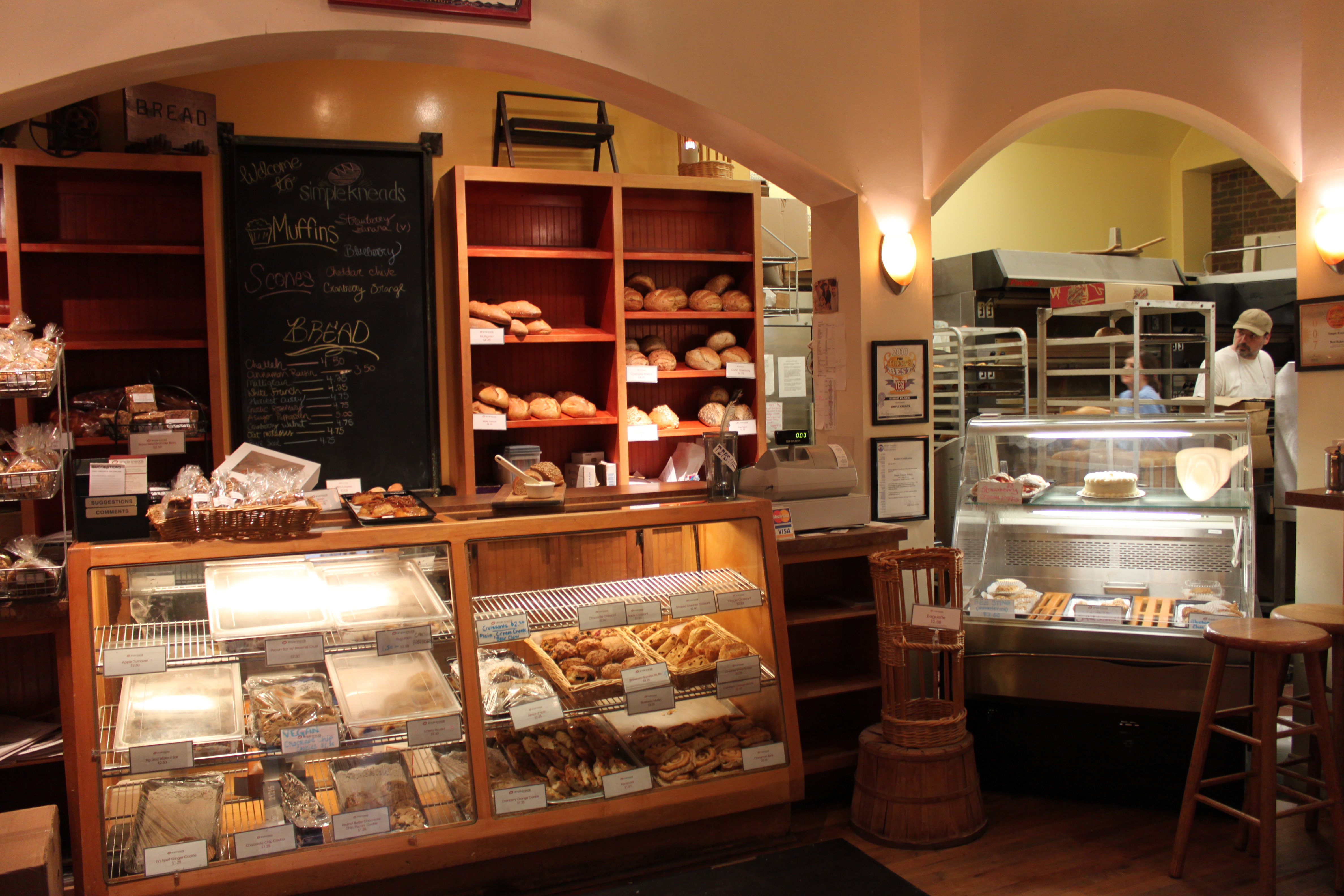 One of the most hidden gems in our downtown is a small artisan bakery on the 200 block of South Elm Street. Almost every Friday, I treat myself to a walk down the street for a baguette at Simple Kneads. Very much like this blog, Simple Kneads isn’t all about the food – it is about the experience. The bakery has the unique ability to excite almost all of your senses. Feeling and seeing the warm glow of oven heat radiating against the walls, the smell of freshly baking breads and pastries and the sound of customers sharing stories of how the bakery brings back the fondest memories. And of course the tastes…
