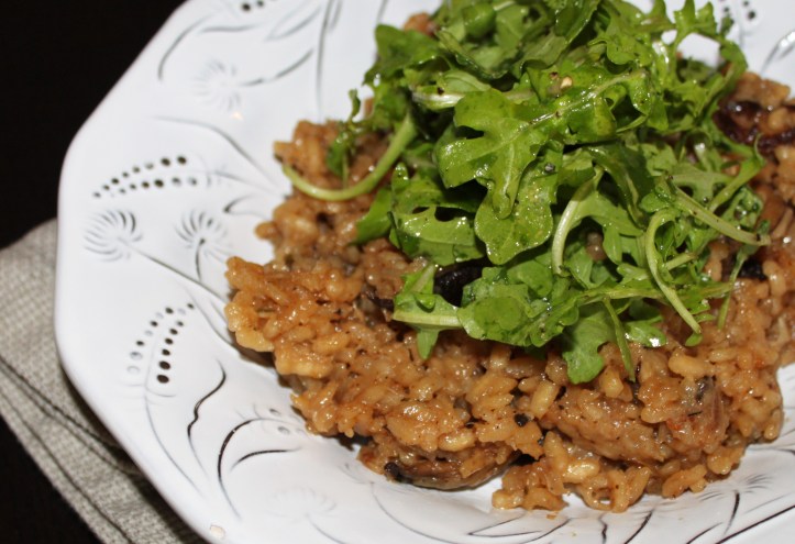Once the rice is tender and creamy. Add the cheese.. Taste for seasoning – add salt and pepper. You may need to add a little more broth if it needs to loosen up. Add the mushrooms. Enjoy!