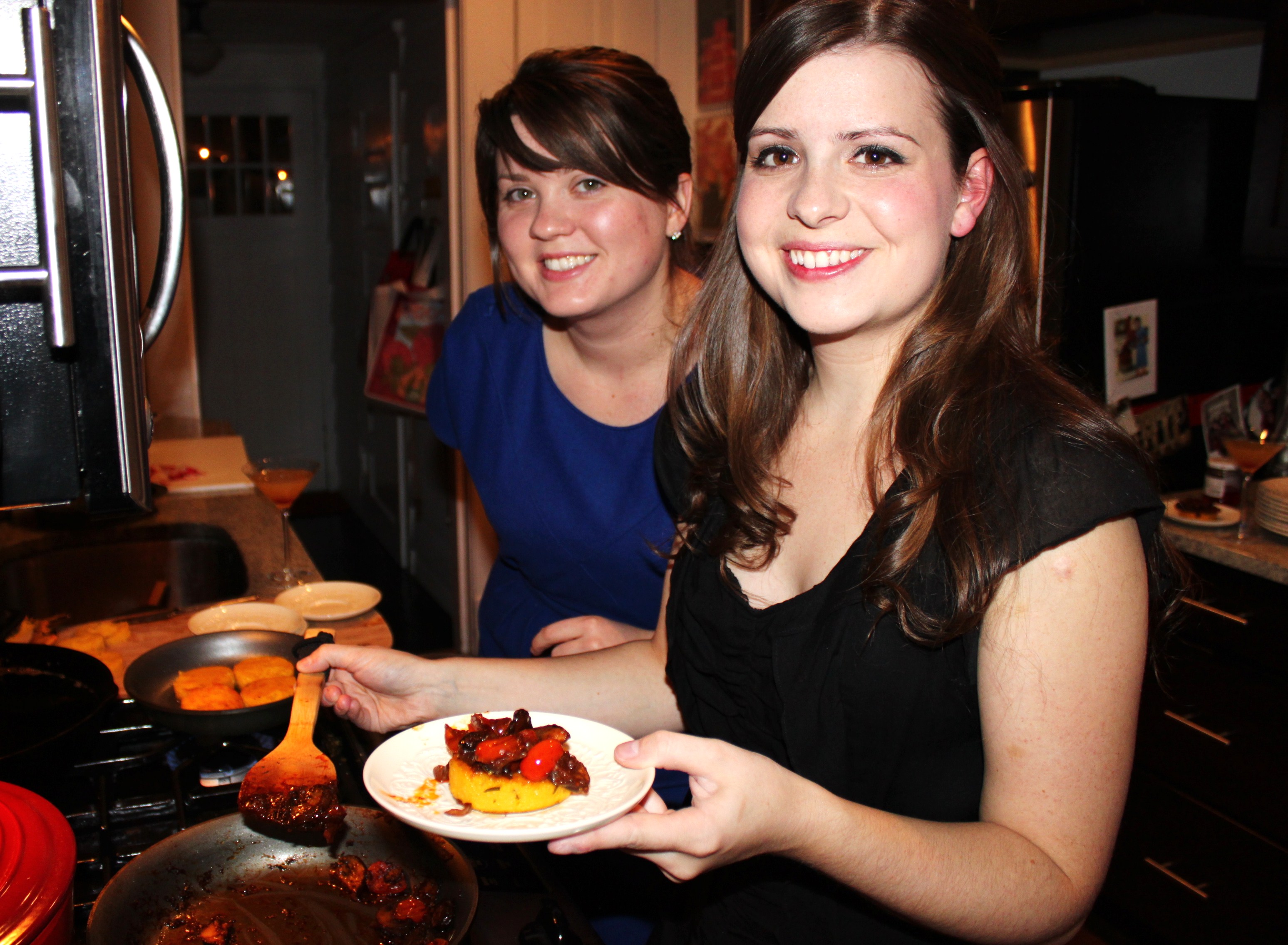 This recipe is the best example of our contrasting cooking styles. Hayley and I picked out a recipe for Wild Mushroom and Tomato Ragout and it wasn’t exactly fit for an appetizer. We had to improvise which I thought was fun – I’m not sure Hayley enjoyed it as much! It was a good compromise to let Hayley make the polenta (which required measurement) and she let me take the lead on the ragout. It was a smart move and an excellent starter.