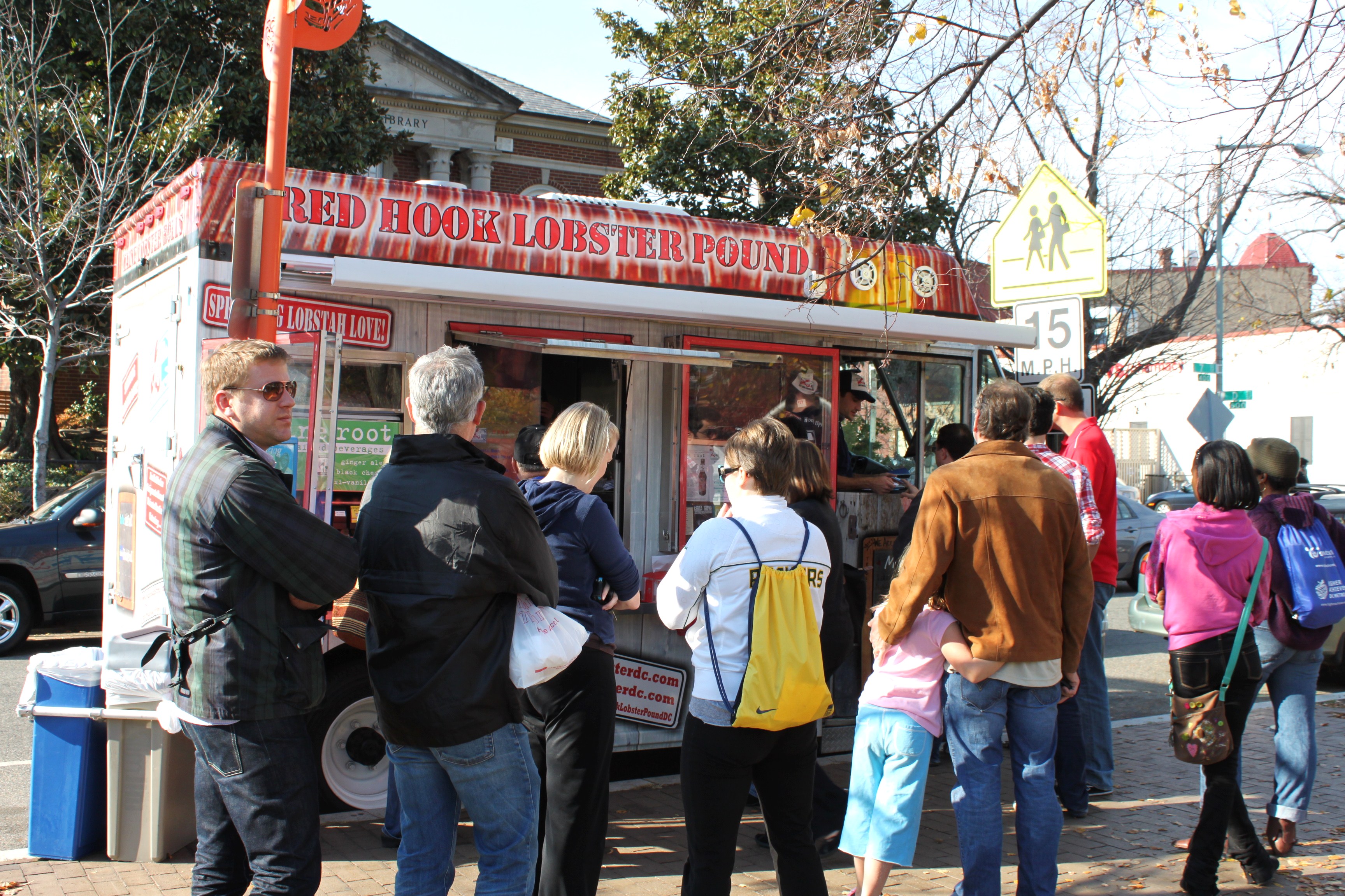 Lately it seems that the hippest food can only be found roaming the streets of an urban environment – and I’m not referring to any center city hunting. Food trucks are popping up all over the country and seem to be one of the biggest culinary trends these days. So in an attempt to stay somewhat fresh, I set out to experience a bit of the hype while in Washington D.C. In preparation for the trip I did my homework on the best food trucks in DC and started to follow them all on Twitter. So when our tummies began to rumble after some hardwork (shopping) I only had to break out my iPhone to start the race. With Beth’s GPS “Gypsy” we jetted across town to the Red Hook Lobster Truck location that they posted on Twitter.