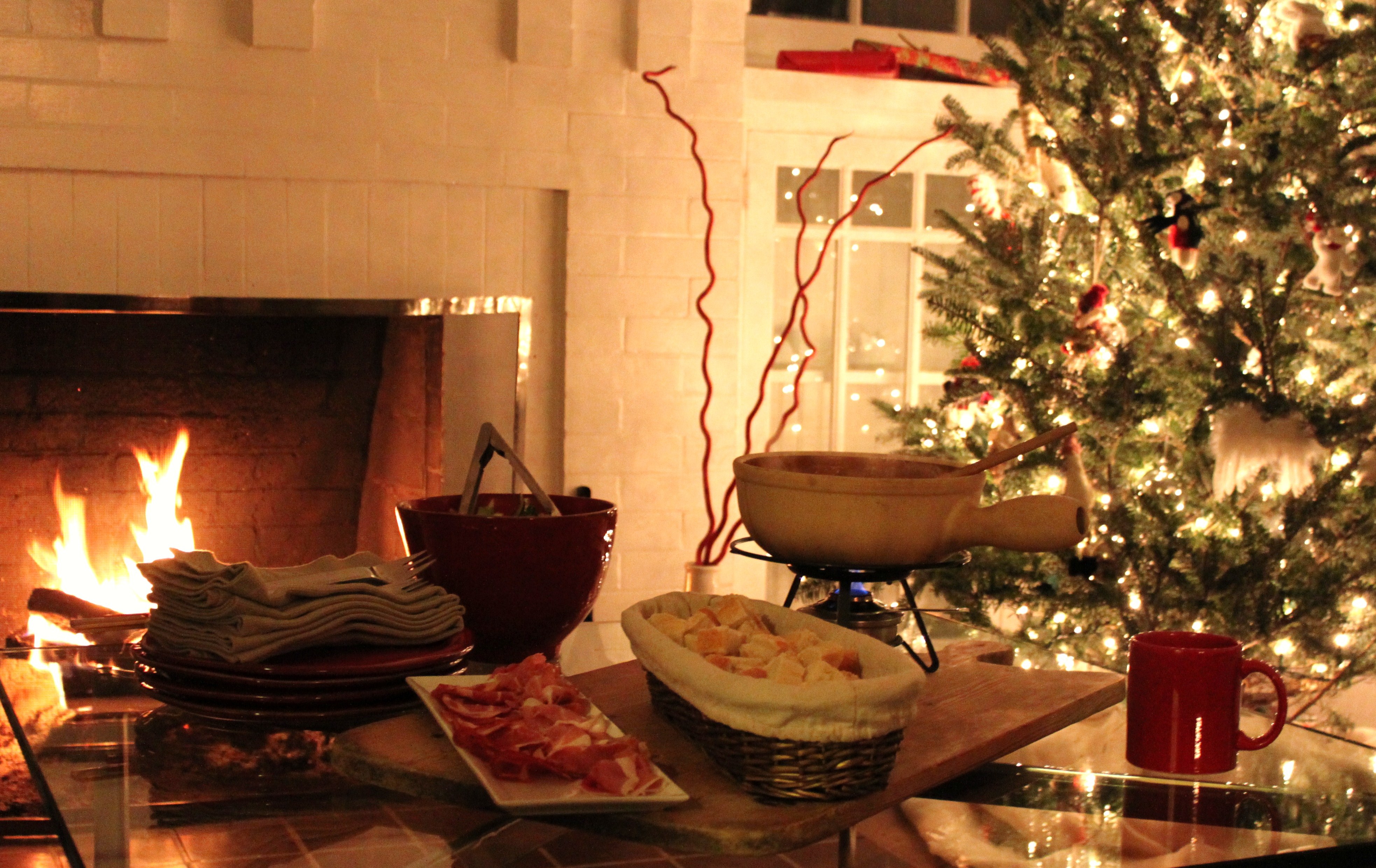 Dining around a communal hot pot requires the closest of friends. I borrowed my mother’s fondue pot for that very reason – to only invite a small intimate group over for a quiet evening around the fire. After much contemplation over what items to dip into dense and pungent pot of hot cheese I stuck with the standard french bread. You could add anything from apple to broccoli, walnuts, asparagus or potatoes.