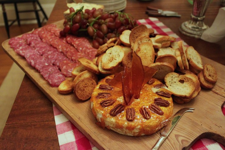 For his party, I made an easy artichoke dip and assembled a cheese board with two cheeses, locally cured meats, grapes and toasted baguette. I experimented with a Caramel Covered Brie recipe from one of my favorite Martha Stewart books – her Hors d’Oeuvres Handbook. The recipe was surprisingly easy – just making a quick caramel and pouring it over a round of brie. The tricky part came in transporting it from Westerwood to Fisher Park – but I covered up the casualties with extra shards of caramel. The consistency of this cheese was delightful – just imagine a creme brulied rich brie. I recommend this when you are trying to jazz up your next cheese tray.