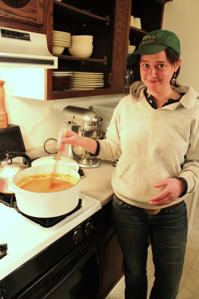 When my friend Margaret suggested we head to the party early to put together a soup for the “non-oyster-eaters,” I questioned how we would whip together a soup in less than an hour with a knapsack of ingredients. To my surprise, Margo recently invested in a subscription to Cook’s Illustrated and has a wealth of information I have been too cheap to invest in! Cook’s Illustrated has one of my favorite PBS shows, America’s Test Kitchen, that airs on Sunday afternoons (I DVR it). Their Creamless Creamy Tomato Soup was the perfect complement to Stephanie’s fancy toasted cheese with a selection of cured ham, apples, cheddar, brie and unique spread of manchego and sour cream. The soup has very little fat (creamless – ah ha!) but has a smooth consistency from blending the base before serving. It came together in no time and was tasty and comforting. Enjoy this while it is still cold out!