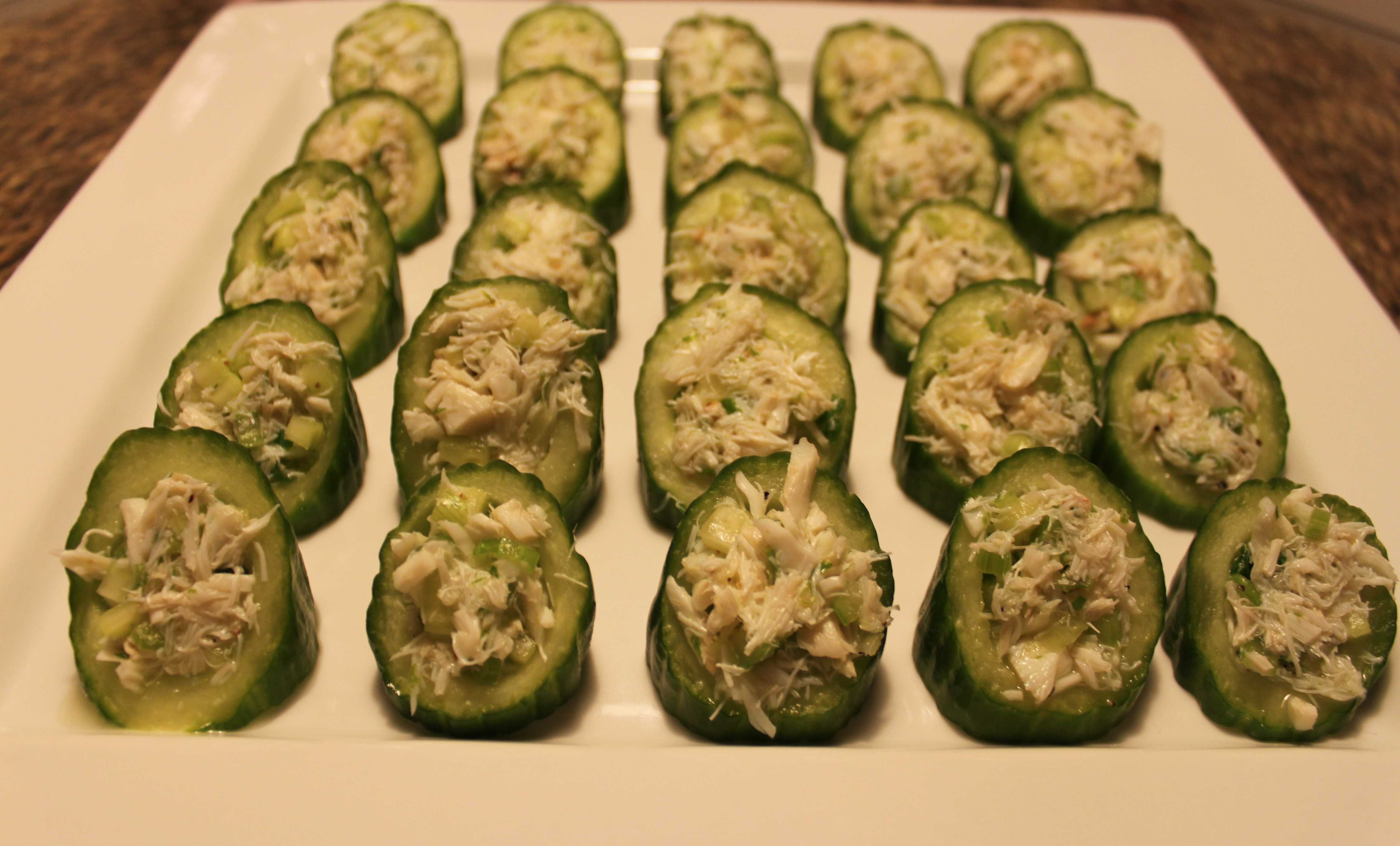 My friend Jamey made these adorable mayo-free crab salad stuffed cucumber cups for our Lady Gaga reunion and passed the recipe on to me. These were a crisp, light and refreshing snack that complimented the other appetizers nicely. As it is always nice to sneak a vegetable in with potato chips and sliders. I’m sure it took some time and effort to make these cucumber cups but they made for a beautiful presentation. I’m sure you could do this in advance.