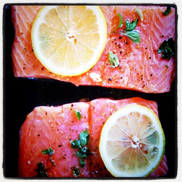 I finished off my weekend grilling lemon and fresh oregano marinated salmon to top a homemade cesar salad with freshly baked croutons – accompanied by a mixture of iced red zinger tea and apple juice. A quiet night cooking on my own (dog by my side) in a warm and blooming backyard…my “Sunday Kind of Love.”