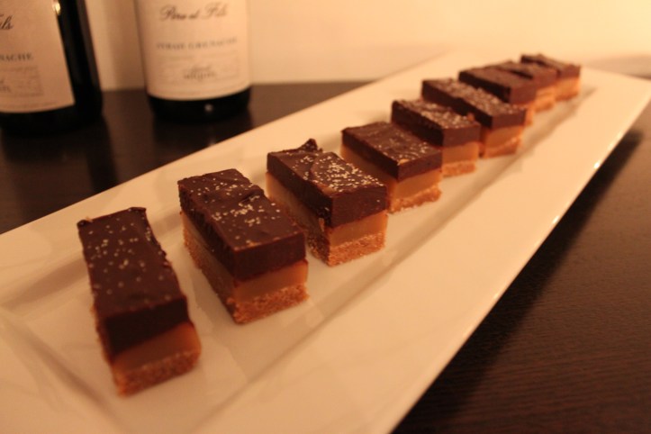 When I asked my friend Jamey to bring dessert to our Moroccan dinner, I had no idea what he was going to bring — and no clue he was such a fantastic candy maker. These salted espresso caramel bars were over-the-top good and a fantastic treat at the end of our meal. I won’t lie – I ate three while we finished off the last bottle of red wine. From what I can see, this recipe is not one to tackle on a busy day but a great way to impress your friends. I highly recommend it for your next adventure in the kitchen.