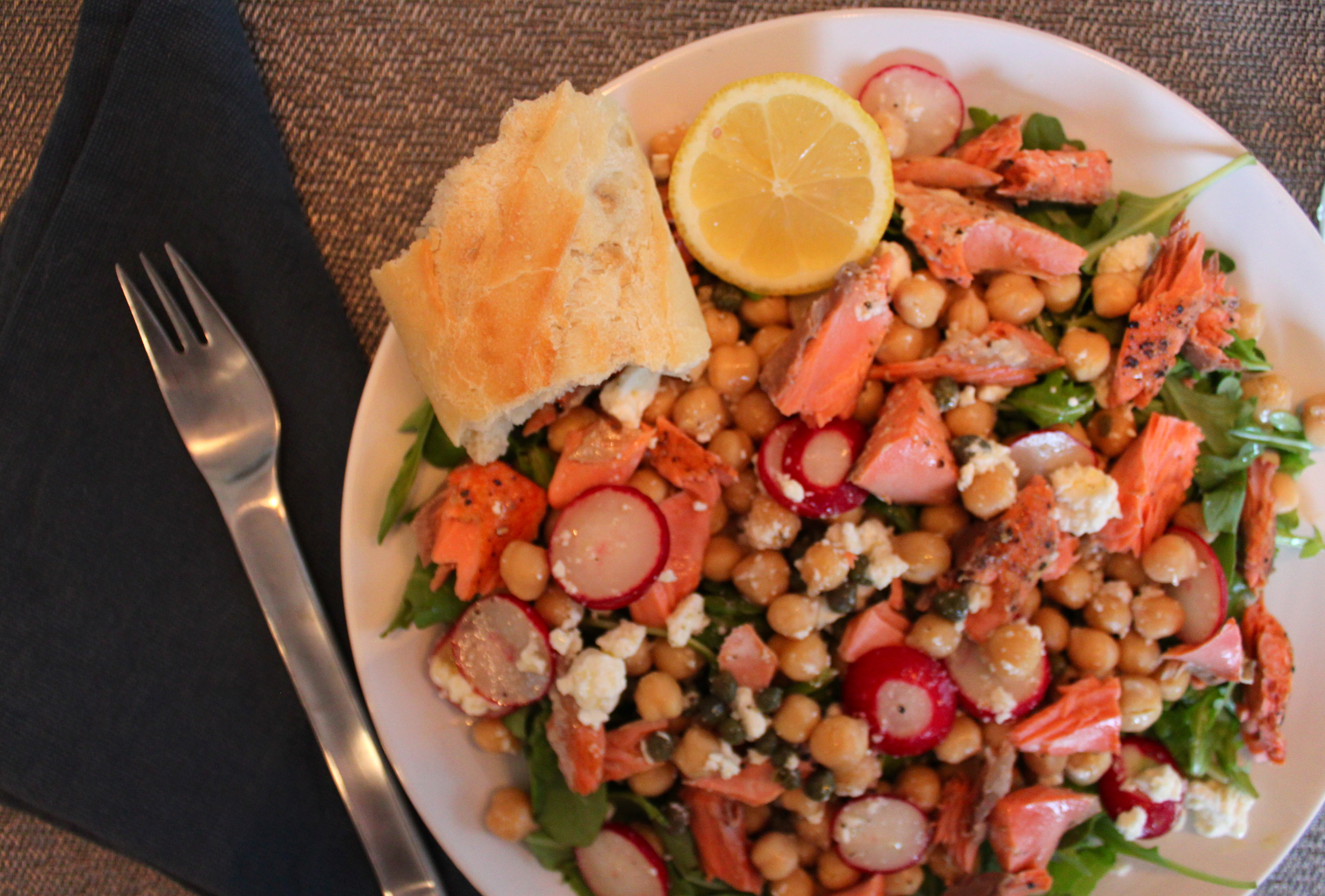 Salmon Salad with Capers, Chick Peas, Radishes and Arugula adapted from What Katie Ate