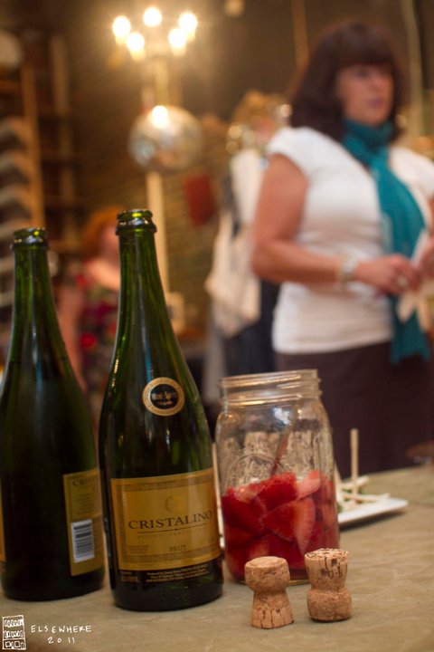 It is hard to have a typical wine and cheese party when you are hosting a gathering at Elsewhere. Considering this, I thought it might be fun to make two artisan beverages. While in Charleston I discovered what I think will be this summer’s most popular liquor – Domaine de Canton – which is ginger liquor I’m seeing popping up everywhere. The folks at Husk, in Charleston, martinated strawberries in Domain de Canton and black pepper and topped them with Champagne – no complaints. I replicated this drink and frankly forgot the pepper. It was still just as good.