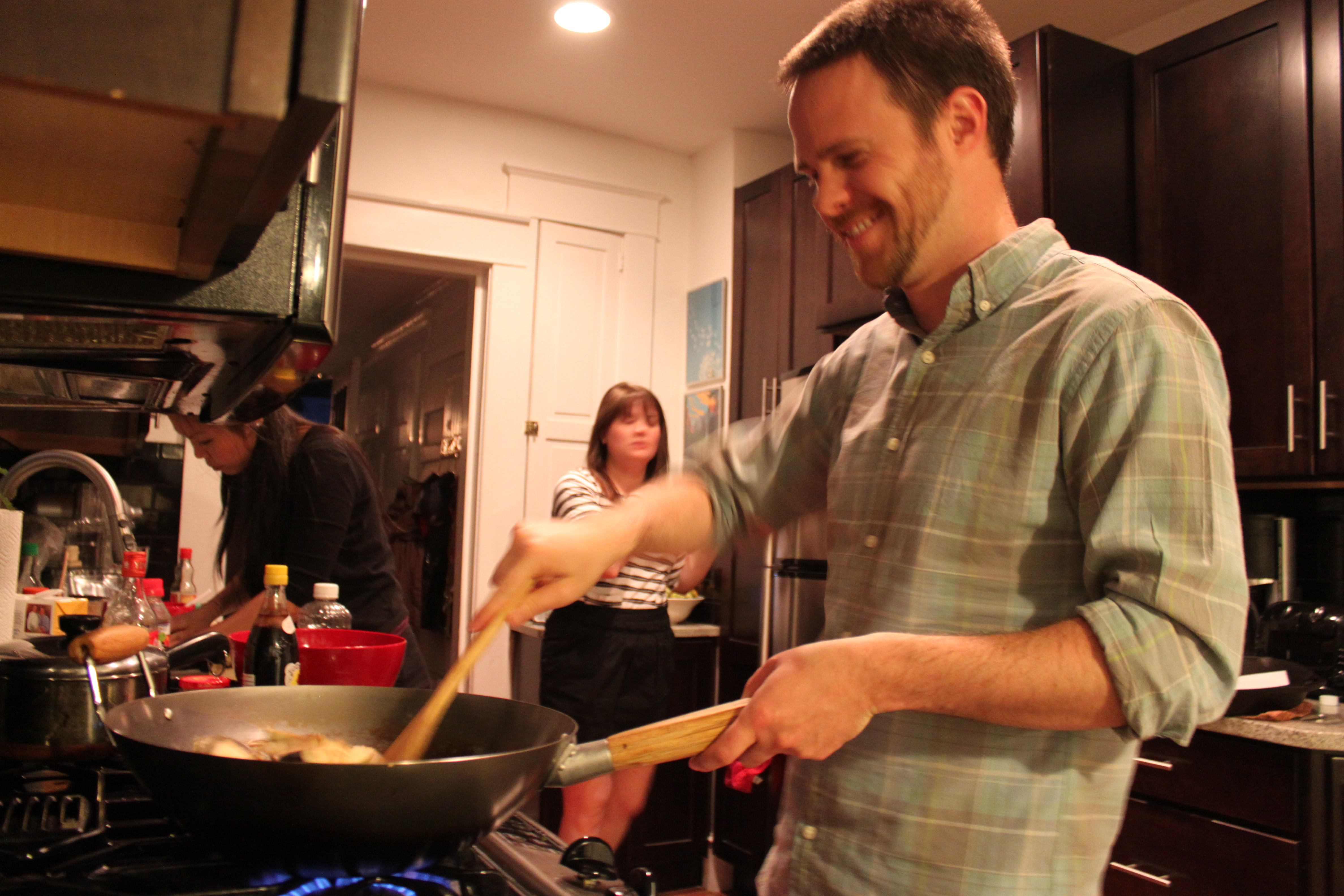After a couple of trips for forgotten ingredients (ginger) and equipment (I don’t own a wok), Jacob put together this tasty dish with out much effort at all. I had zero expectations on what this would taste like and was impressed with how tasty it was! Wendy was impressed by how authentic it was (although she says it is traditionally has meat in it). And our friend Aaron, who has a serious distaste for eggplant (and French wines), actually loved this dish too! So build up that courage you eggplant haters!