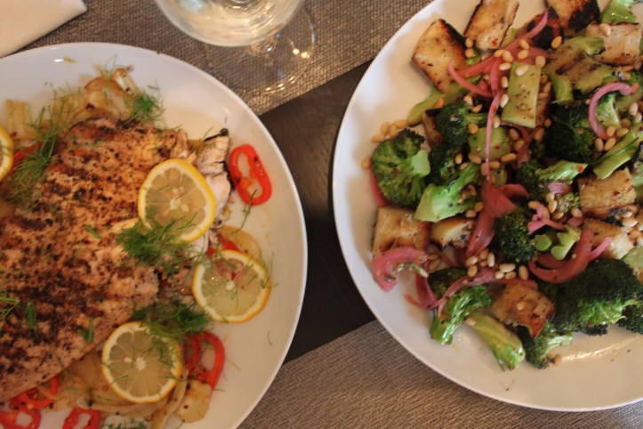 Aida is a great cook and has a similar style of adventure and improvisation in the kitchen.  After taking an exercise class yesterday, we chatted about putting together a Sunday Supper to end the weekend and exchange final bits of gossip before she headed back north. We skipped all serving utensils and ate off of communal plates of salad and grilled fish. Both dishes were extremely fresh and simple – each with a nice kick from chili flakes. They paired extremely well with cold Vinho Verde. I’ll post the recipes this week – and keep our gossip between us.