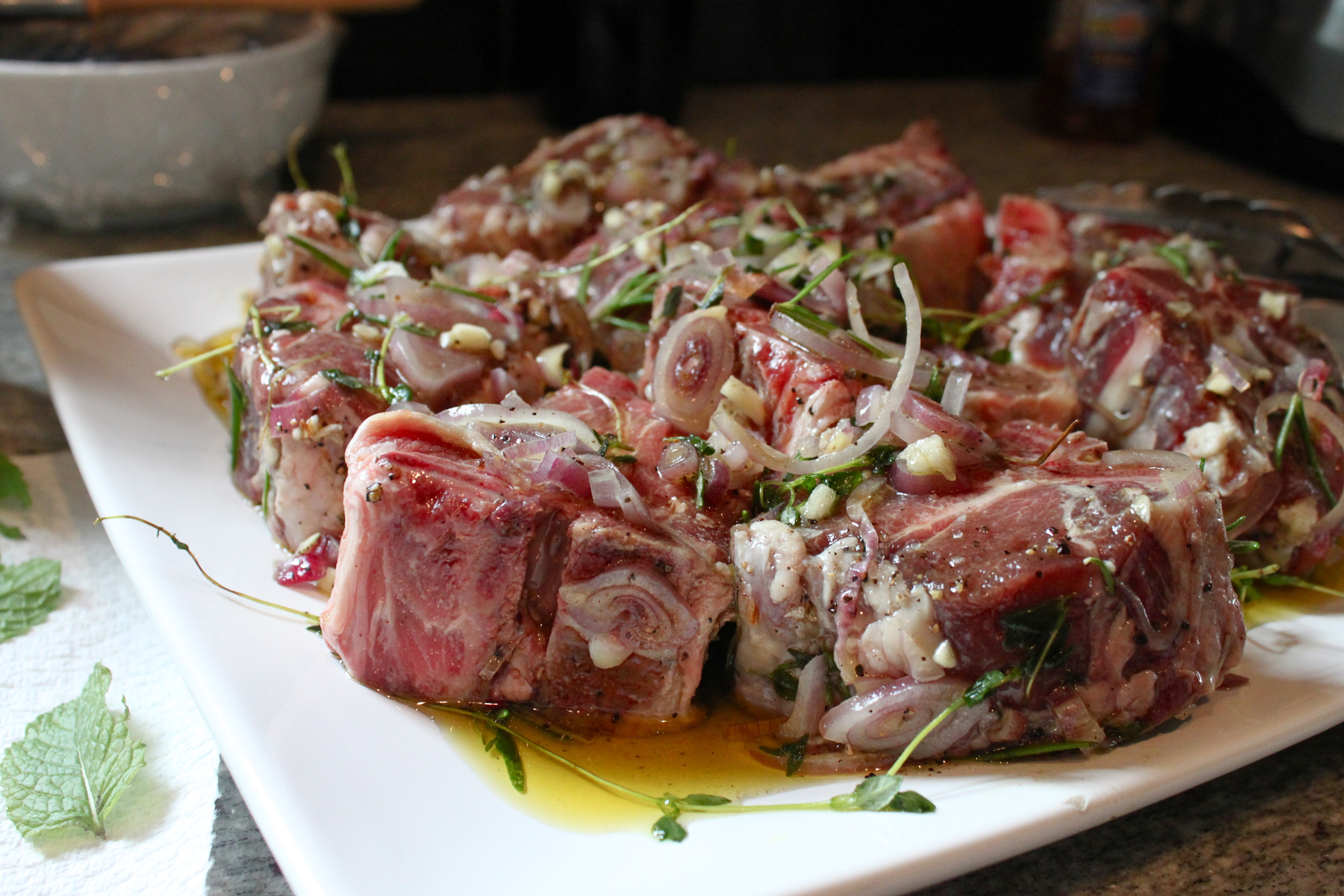 Marinate the lamb for 24 hours in the Souvlaki Marinade. Grill and smear with Lemon Puree.