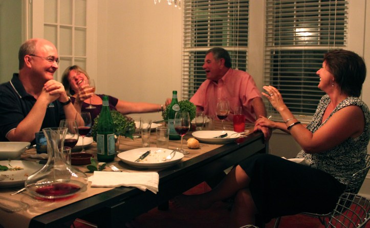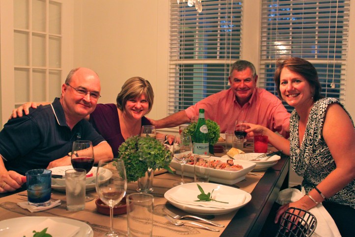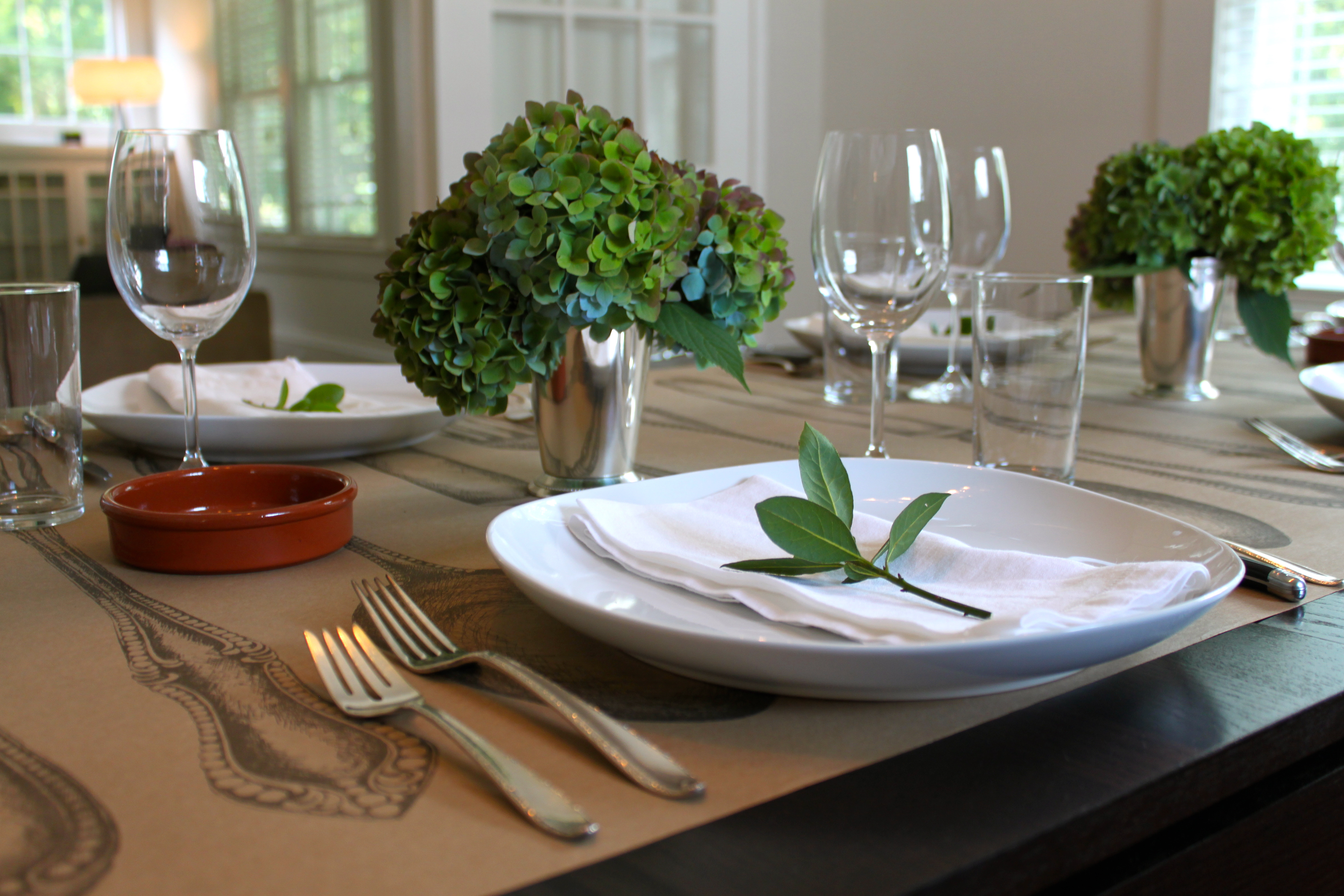 We couldn’t have been luckier to have such a fun crowd for the cooking class. Mary, Sam, Lynn and John exceeded all my expectations – they were spirited learners without any objection to jumping into the kitchen to explore. And perhaps more importantly, there is no doubt that they value the ability to have fun just as much as I do. We all had a blast cooking and dining together. I split up the meal into three cooking stations and I assisted everyone creating a dish. In Mod Meals style, we used no measuring equipment. We tasted along the way, improvised and adjusted the dishes to our own personal tastes. We concluded the evening at the table together – decorated in culinary themed butcher paper, hydrangeas and bay leaves.