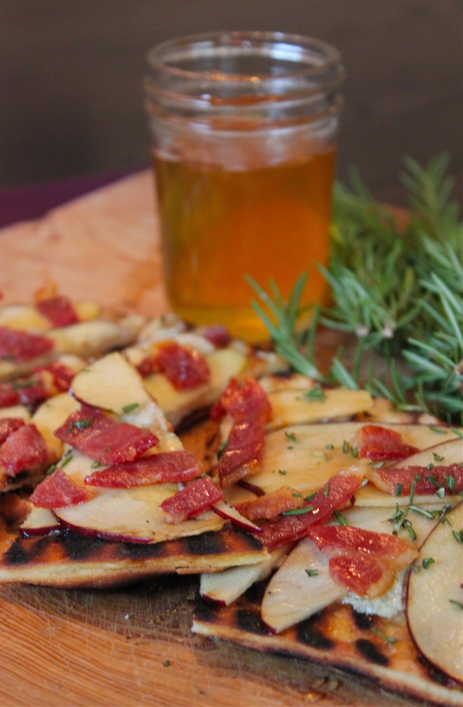 Grilled Blue Cheese, Apple, Country Ham and Honey Flatbread