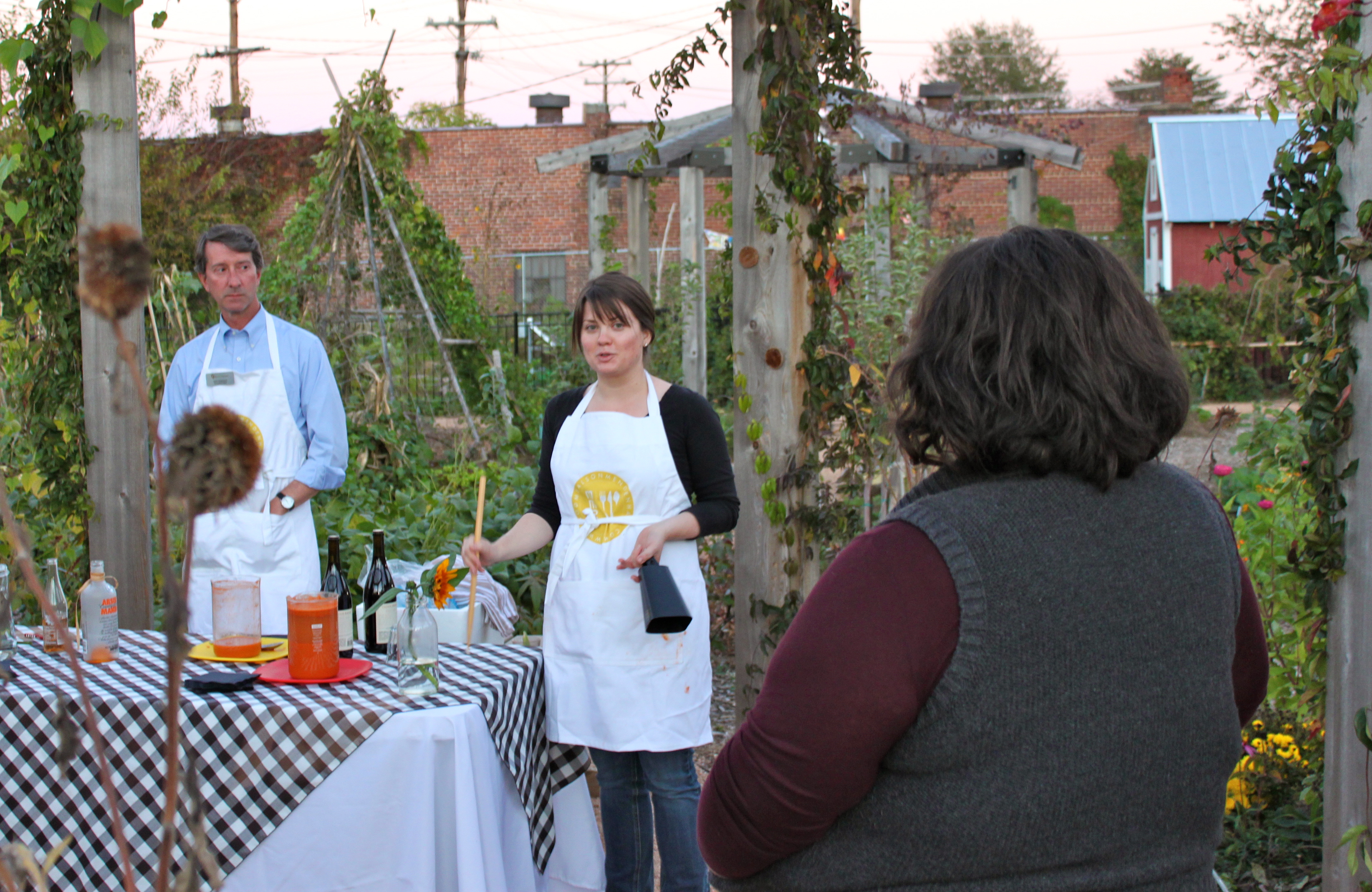 Last week I took on another new adventure – to teach a cooking class at the Greensboro Children’s Museum Edible Schoolyard. In actuality, this was truly a group of very supportive old and new friends looking for a nice evening with good friends, scenery and food. I’m pretty sure sticking their hands in to a raw chicken and learning about vinaigrettes was just gravy. We all split up into teams to cook the meal together and then ate family style underneath the barn in the Edible Schoolyard. It couldnt have been a more perfect Fall evening to celebrate food and friends. Regardless of their reasoning for joining the class, I think everyone left very happy and full. I’ll post the recipes from our evening this week.