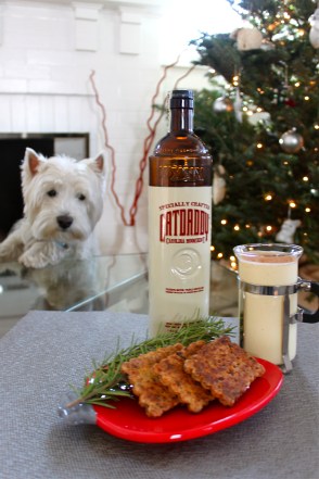 I returned home from Madison with an urge to make a Catdaddy Corn Liquor Cocktail for Christmas. ‘Tis the season, right? Catdaddy Carolina Moonshine smells like pure vanilla extract and tastes likeChristmas, with hints of nutmeg and cinnamon. In the spirit of keeping things close to home, I cheated and purchased Homeland Creamery’s Eggnog, spiked it with Catdaddy Moonshine and dusted it with fresh nutmeg. For all you with an affection toward Tennessee bourbon, it’s time to try something in our neck of the woods. This blubbery concoction, with nine grams of fat and 80 proof alcohol, must be paired with something similarly decedent yet savory.