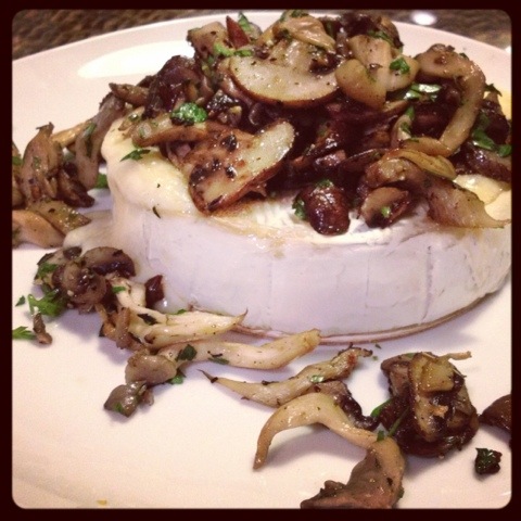 Baked Brie with Sauteed Cremini and Chanterelle Mushrooms