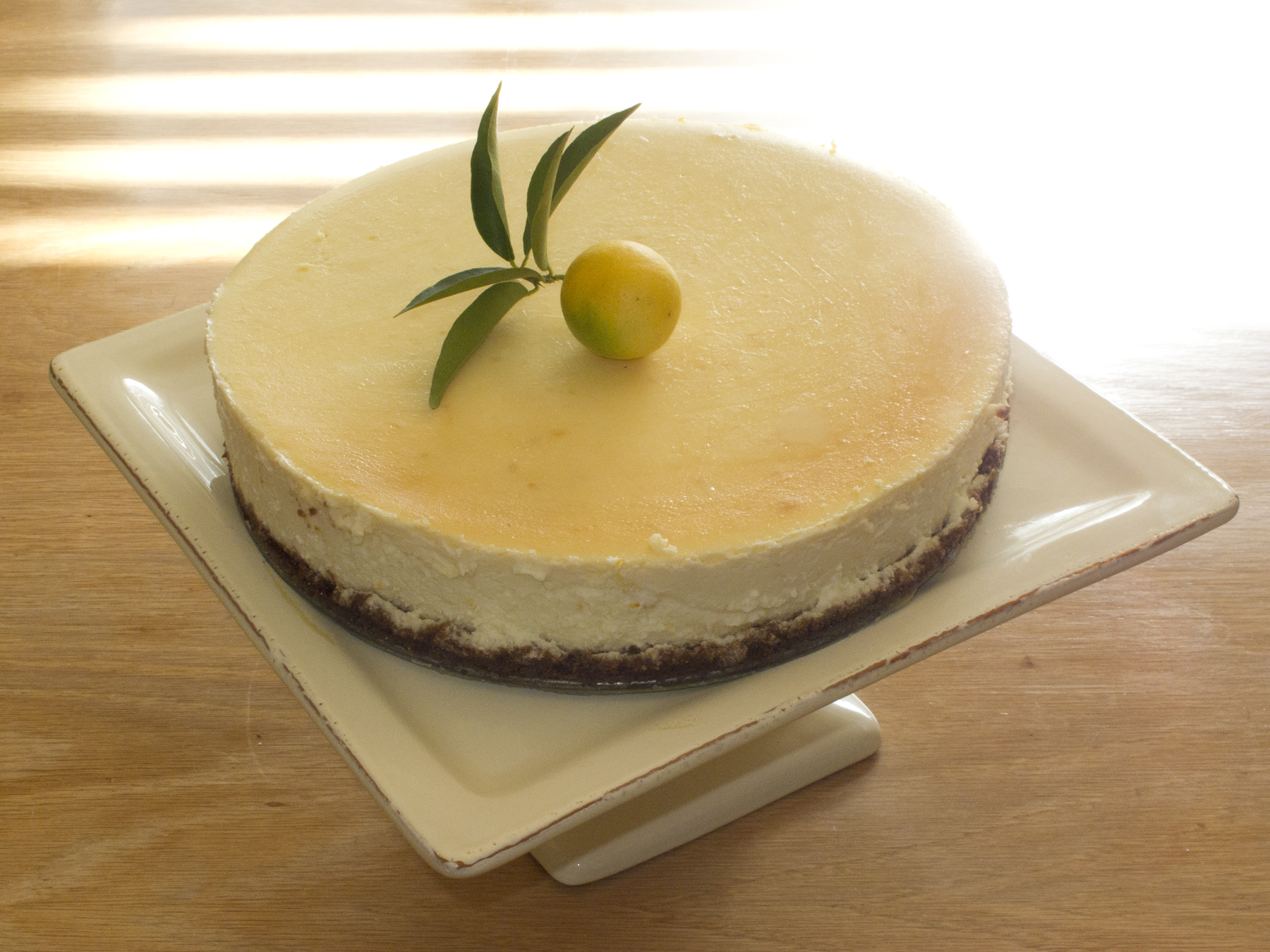 My parent’s neighborhood is full of citrus trees. There actually used to be many more but last year’s freeze hurt several – including my favorite sour orange tree (no more Cuban marinades this year). Still though, you can find meyer lemons, limequats, kumquats, grapefruits, calamondins and more from one yard to the next. My mother and I have the tendency to walk from house to house picking fruit (I brought back a car load on Tuesday!). No one ever seems to mind considering everyone has more fruit than they know what to do with. When there is such amazing fruit, it’s hard not to include as much of it in the Christmas menu as possible. I found this simple recipe for Lemon Cheesecake with Gingersnap Crust using my iPhone Epicurious App – in full laziness while laying on the couch chatting with my Mom. We both agreed it sounded delicious and I sent my Mom to Judy’s and Debbie’s yards to harvest some meyer lemons and limequats.