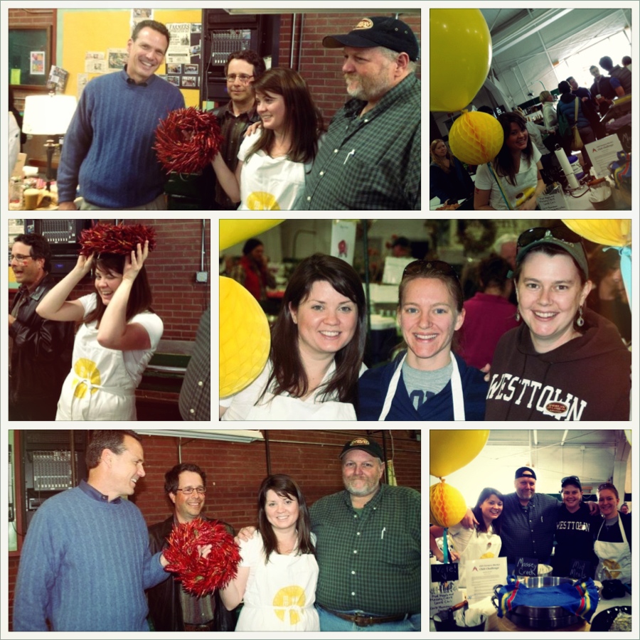 It took a village to win the Challenge – so thanks to everyone who pitched in from helping make all the chili Friday night to coming out to vote Saturday morning. It was wonderful seeing so many of my friends, co-workers and readers at the market. I also can’t thank the McCollum Family at Massey Creek enough for all their enthusiasm, pep and support of the competition. They truly feel like family now.