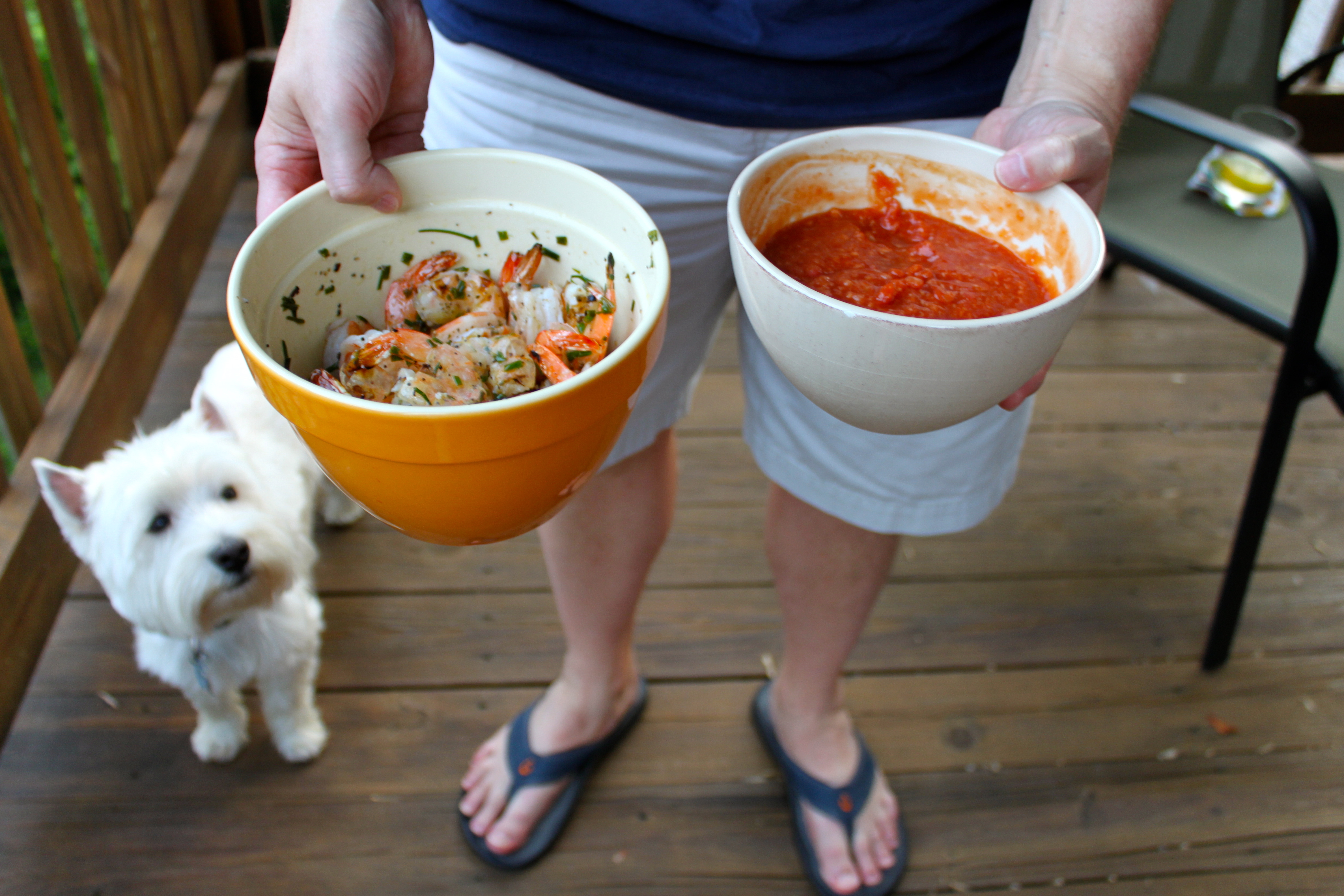 - 1 pound easy peel shrimp, legs trimmed with scrissors