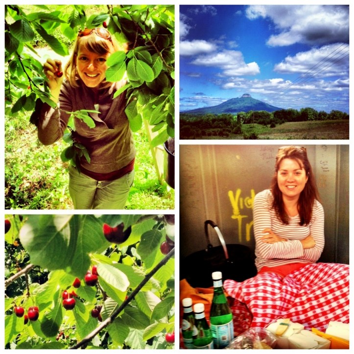 Saturday, friends and I drove to Virginia to cherry pick in the Levering Orchard. It was a surprisingly chilly day (note the our picnic huddled in a strange fort on the BlueRidge Parkway) but we came home with giant bags of fresh cherries. I’ll be working on a batch of Cherry Bounce tonight!