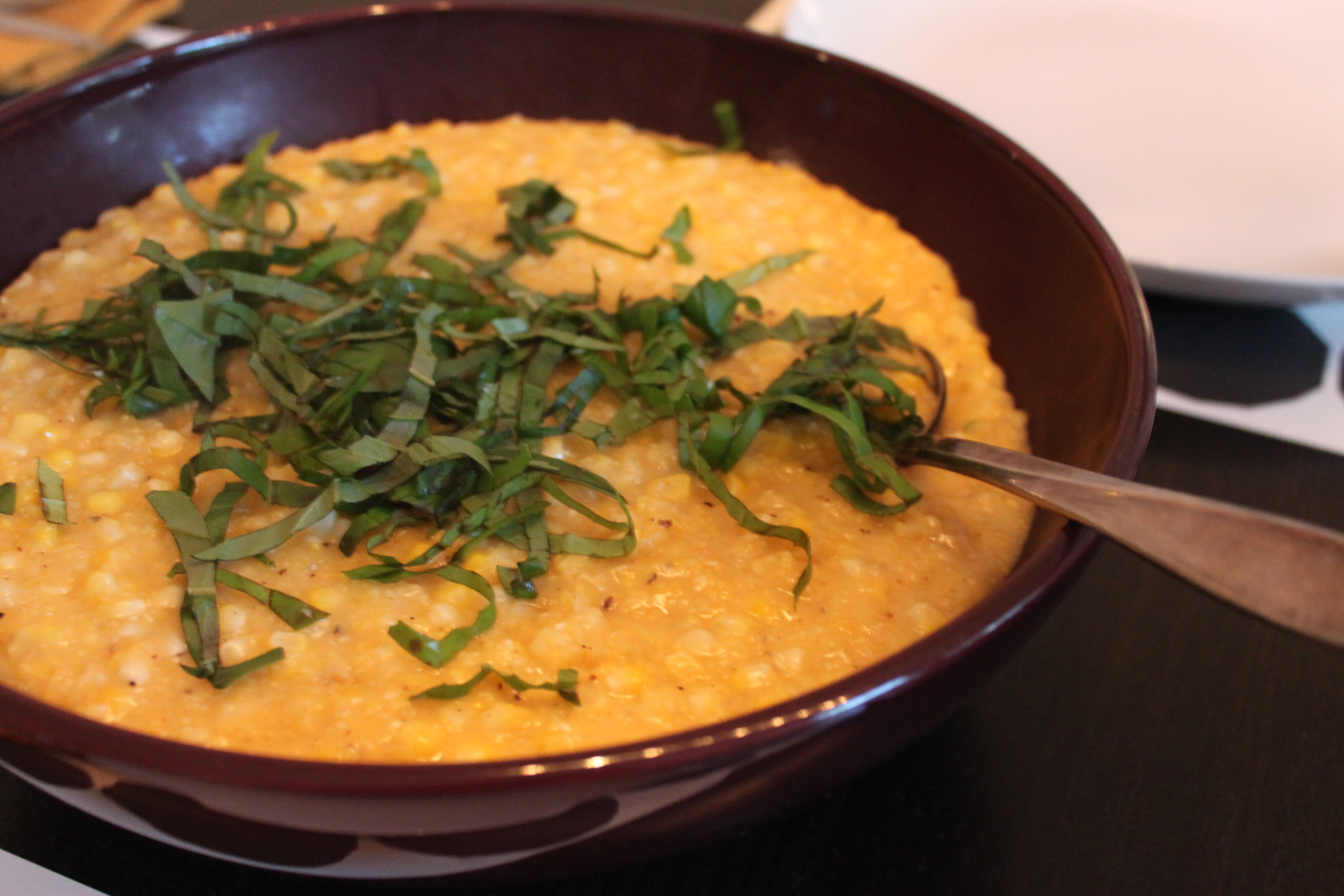 Cheesy Polenta with Fresh Corn and Basil