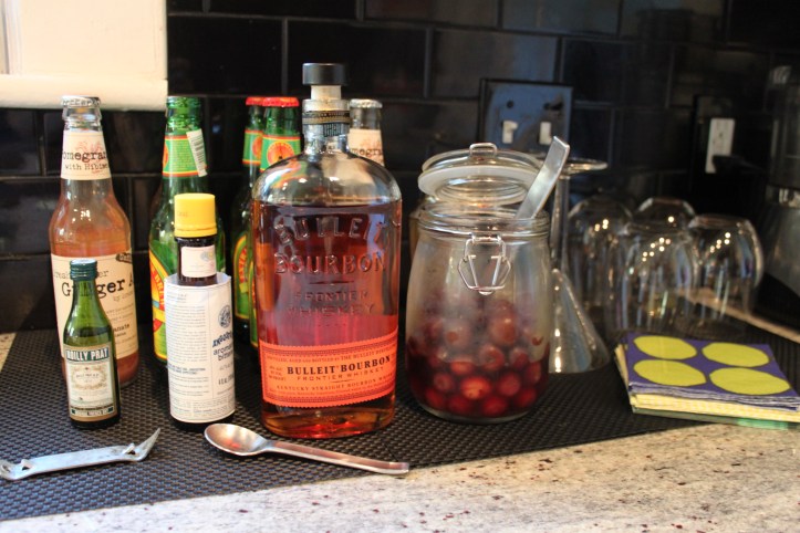 Last Thursday I mixed up a couple bourbon beverages for friends after work. With good bourbon, ginger beer and summer Leveraging Orchard cherries soaked in bourbon (about 6 months) on hand – it was an easy bar to serve anything from sweet to masculine.