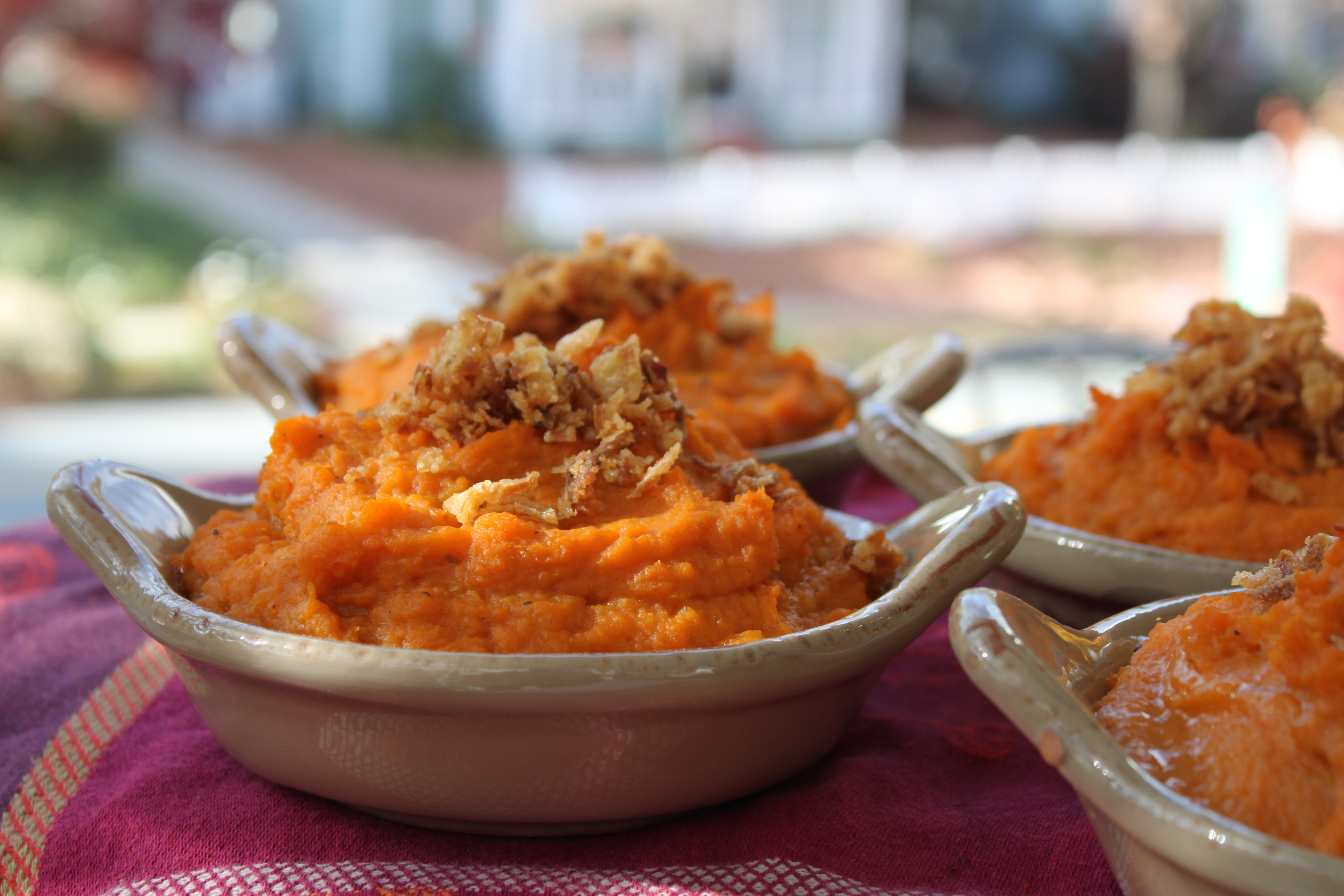 - Whipped Red Curry and Coconut Milk Sweet Potatoes with Crispy Onions