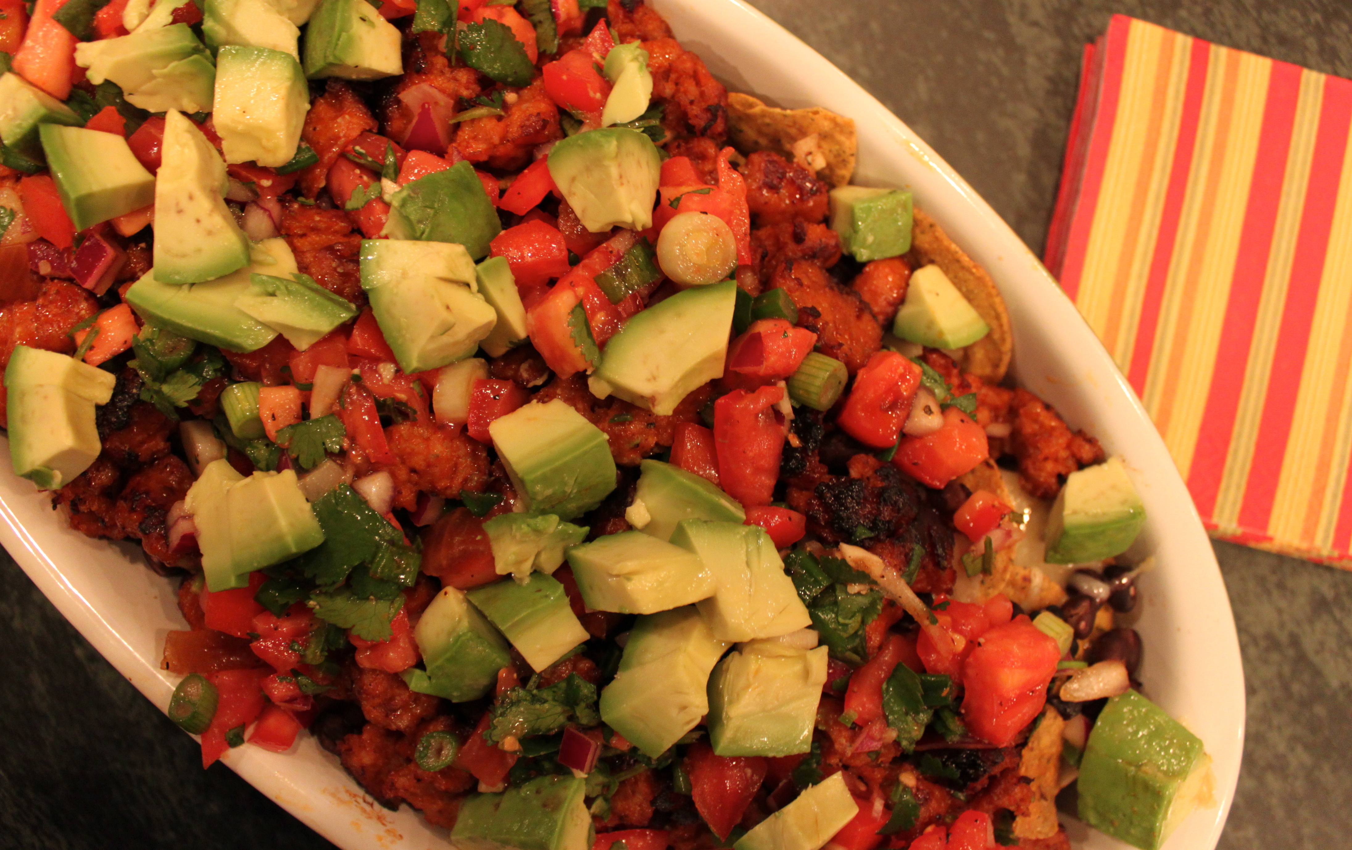 These nachos were a great addition to the Super Bowl party with delicious turkey chili and dark chocolate for dessert.