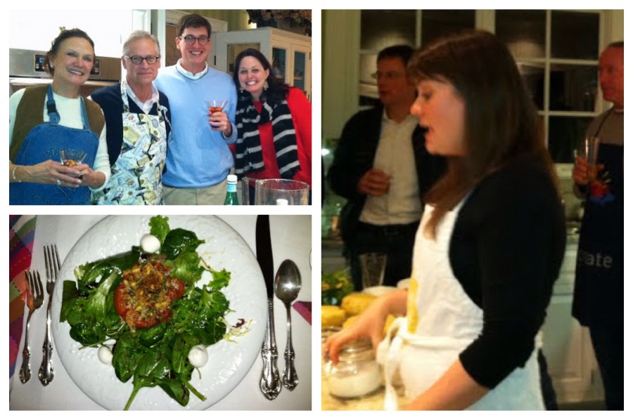 As I mentioned last week, we prepared a really delicious Warm Italian Salad with Stuffed Tomatoes, Mozzarella and Balsamic Vinaigrette at the Off Mendenhall Cooking Class for the Mortenson group a couple weekends ago. It was perfect starter for a cold night but would also be splendid during the summer with ripe seasonal farm-grown local tomatoes!