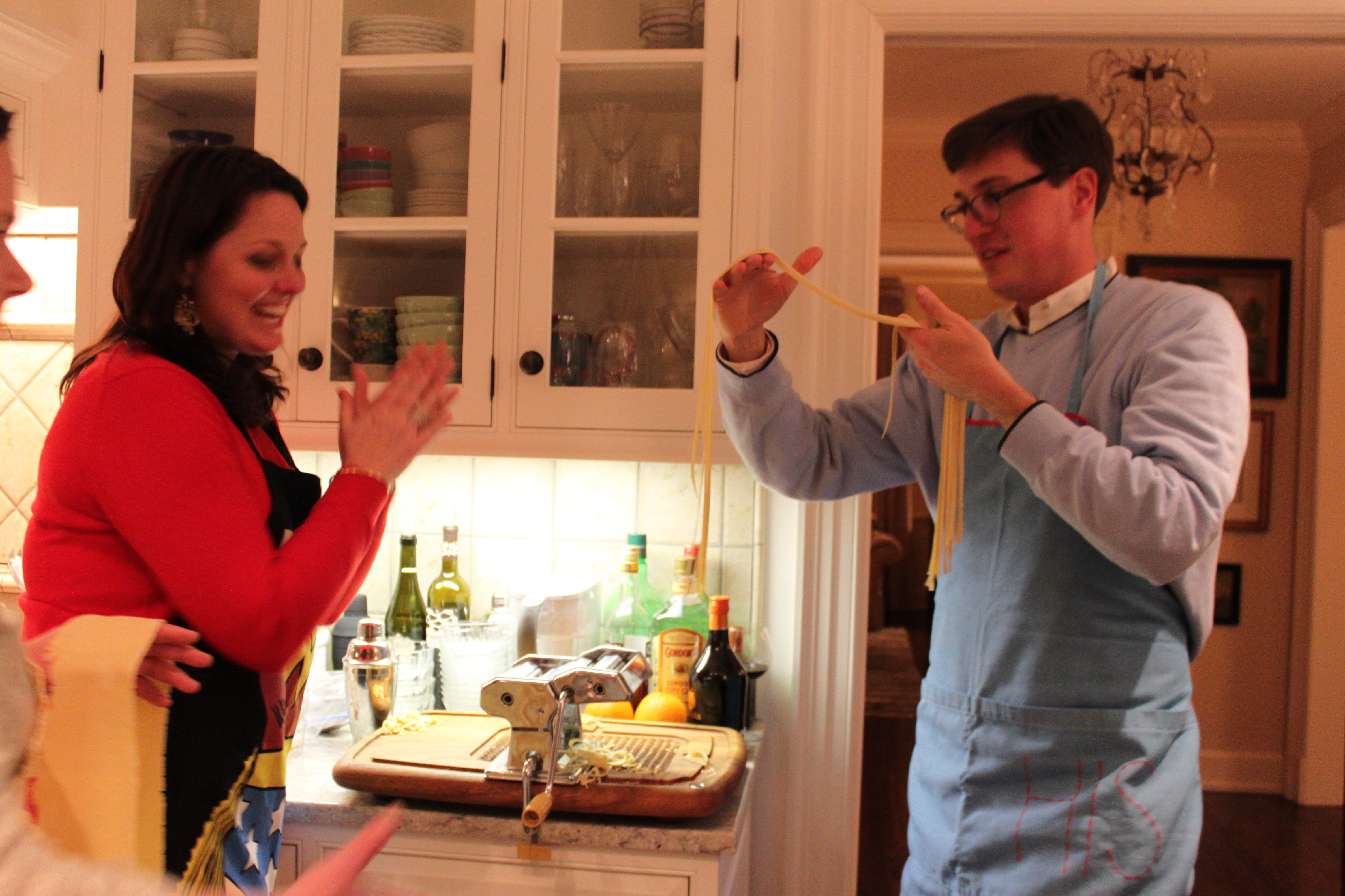 There is no doubt that the hit of the Off Mendenhall Cooking Class was not the eating – it was the pasta making! Almost everyone took part in the making of mounds and mounds of homemade pasta. Each had their own challenges and victories. Every noodle was delicious.