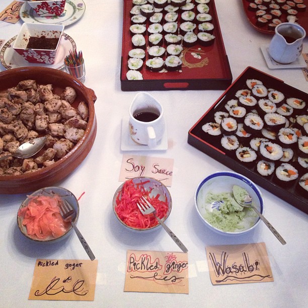 And, if it wasn’t enough, I was treated to homemade sushi, saki and song at my dear friend Michiko’s home tonight. She invited music lovers over for a special sneak peak of the Greensboro Opera’s performance of Mikado coming up in June. A really special evening hearing young talent from UNCG.