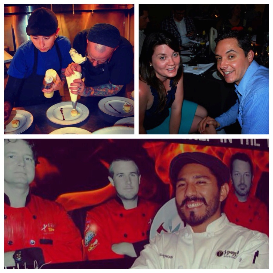 Last night, I joined a crowd of regional food lovers for the second week of the Competition Dining Fire in the Triad series. Chef Kristina Fuller, of Crafted in Downtown Greensboro, competed against Juan Guzman, of J. Pepper’s in Kernersville with the secret ingredient – Pepsi! The group dined on six courses of Pepsi-centric dishes – from a “Duck Fat Bacon Confit, Pickled Root Vegetable Salad, Pepsi BBQ Glaze, Honey Dijon Mustard” to “Pepsi Roasted Duck Breast, Farro Risotto with Wild Mushrooms and Sweet Potatoes, Pepsi Beurre Rouge, Pistachio & Arugula Pesto” and a “Profiterole filled with Pepsi Cream, Mini Pie with Strawberry-Pepsi-White Chocolate Mousse, Pepsi Candied Bacon.” You can see the full list online – those dishes were my particular favorites.