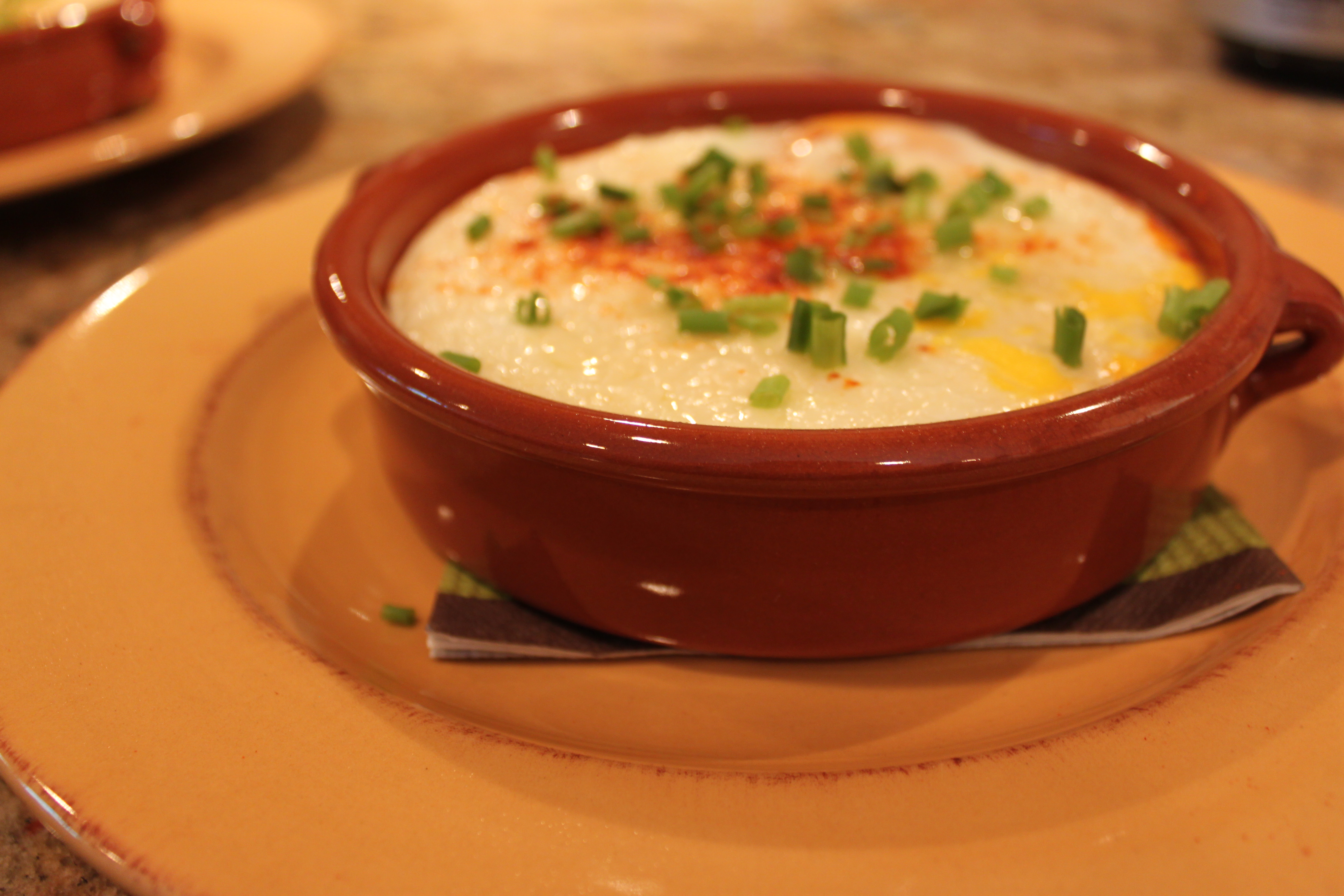 Brunch is at it’s best with my friends in the North Carolina mountains. After a 5 mile hike on a Sunday morning (with red wine seeping from our pores), nothing is better than a morning sun and a homemade meal. My friend Phil took the lead on this year’s Sunday brunch – preparing Eggs Flamenco from Anne Burrell’s show. Jamey and Phil are big fans of Anne and we often test her recipes together. We haven’t had a bad one yet. This couldn’t be much easier – EXCEPT, skip the food mill and just crush the tomatoes by hand or in the food processor. It will save you a lot of trouble and many many dishes.