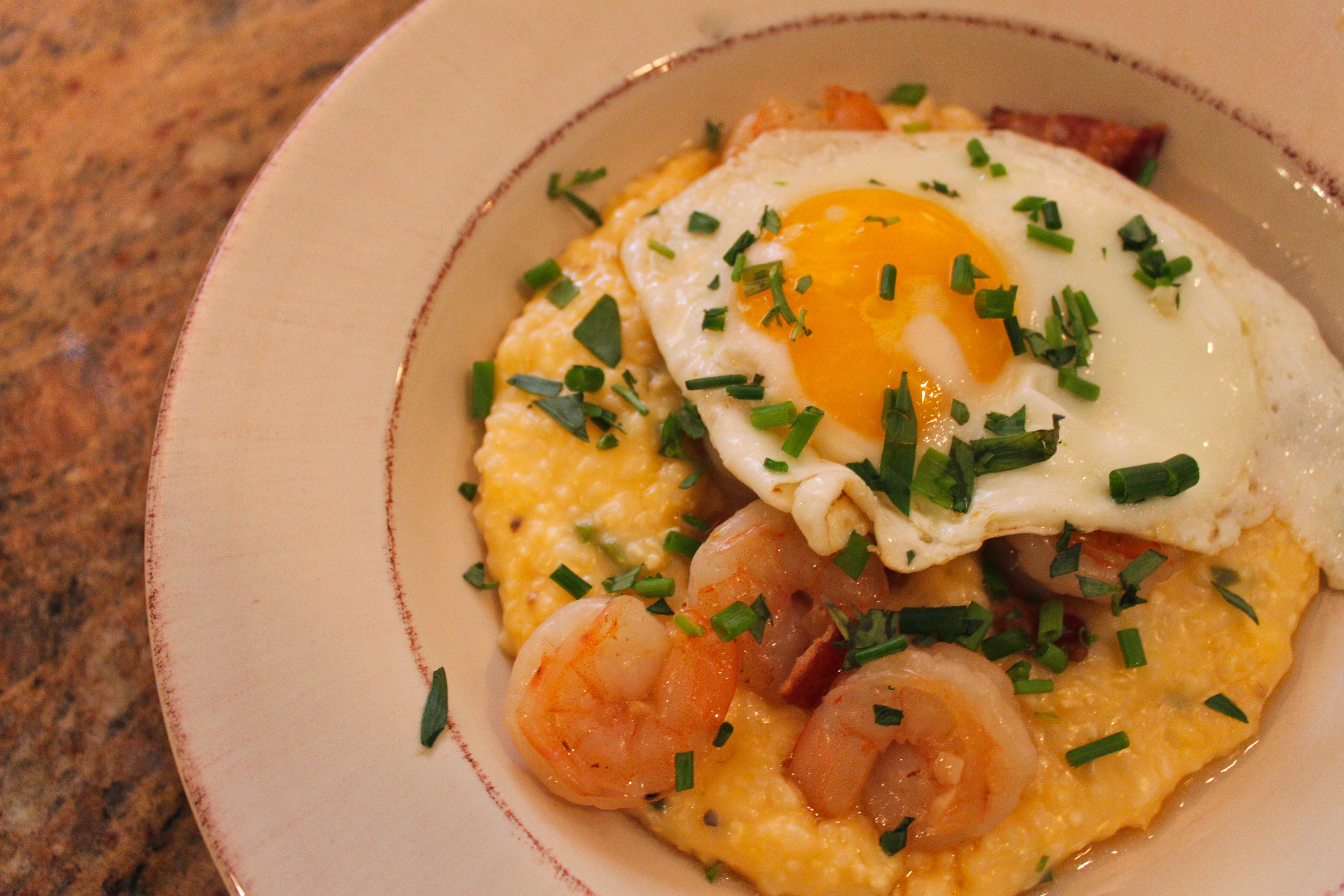 North Carolina Shrimp and Guilford Mills Grits with a Local Fried Egg