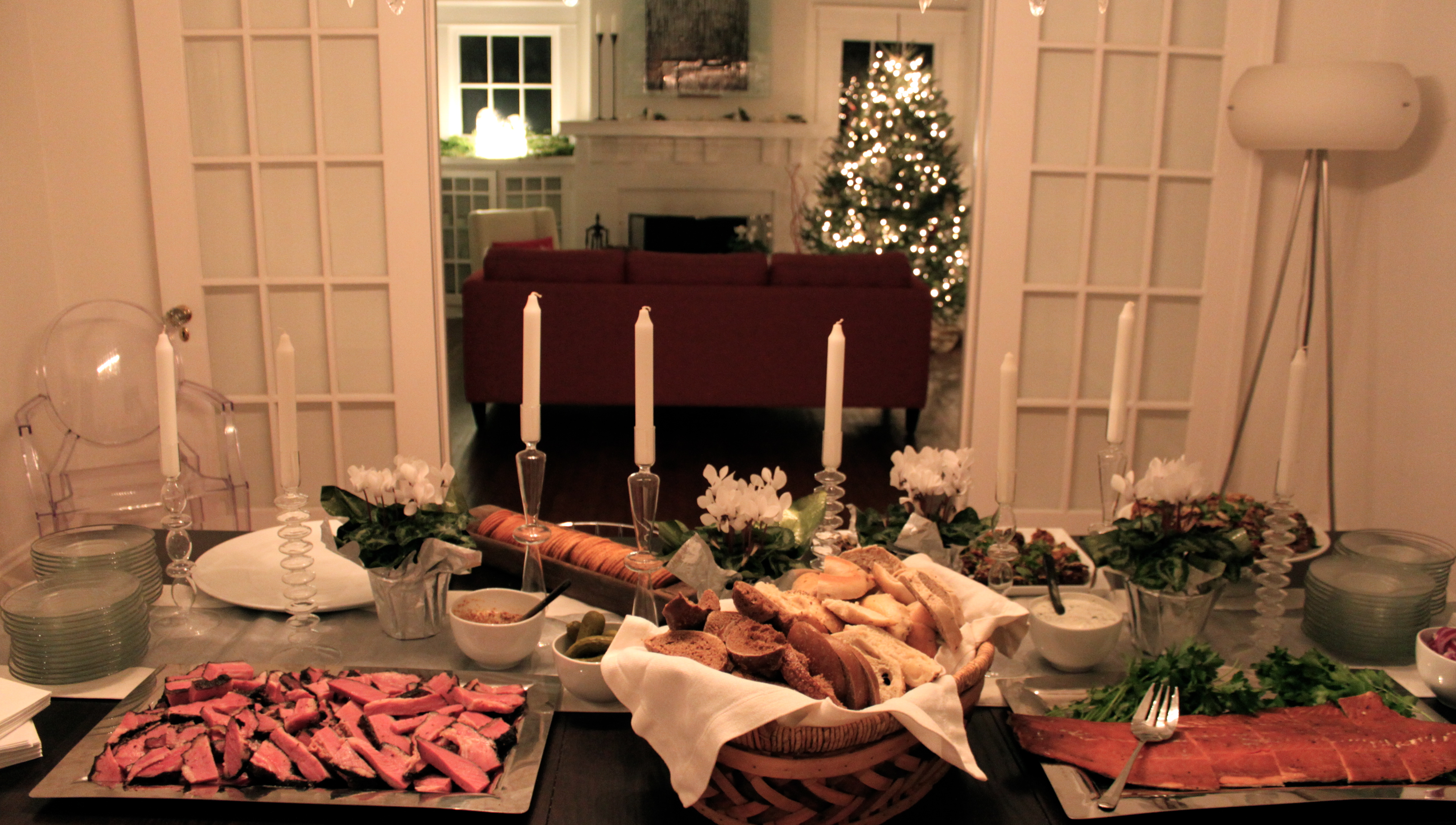 In addition to the pastrami, I purchased a whole cedar smoked salmon from The Fresh Market. It was a the perfect presentation and the most tasty smoked salmon I’ve ever had. To accompany the pastrami and salmon, I made two large artichoke dips, countless stuffed mushrooms and batched and batches of shortbread cookies and fancy party mix. You the know the party is good when all the food is gone… every last bite!