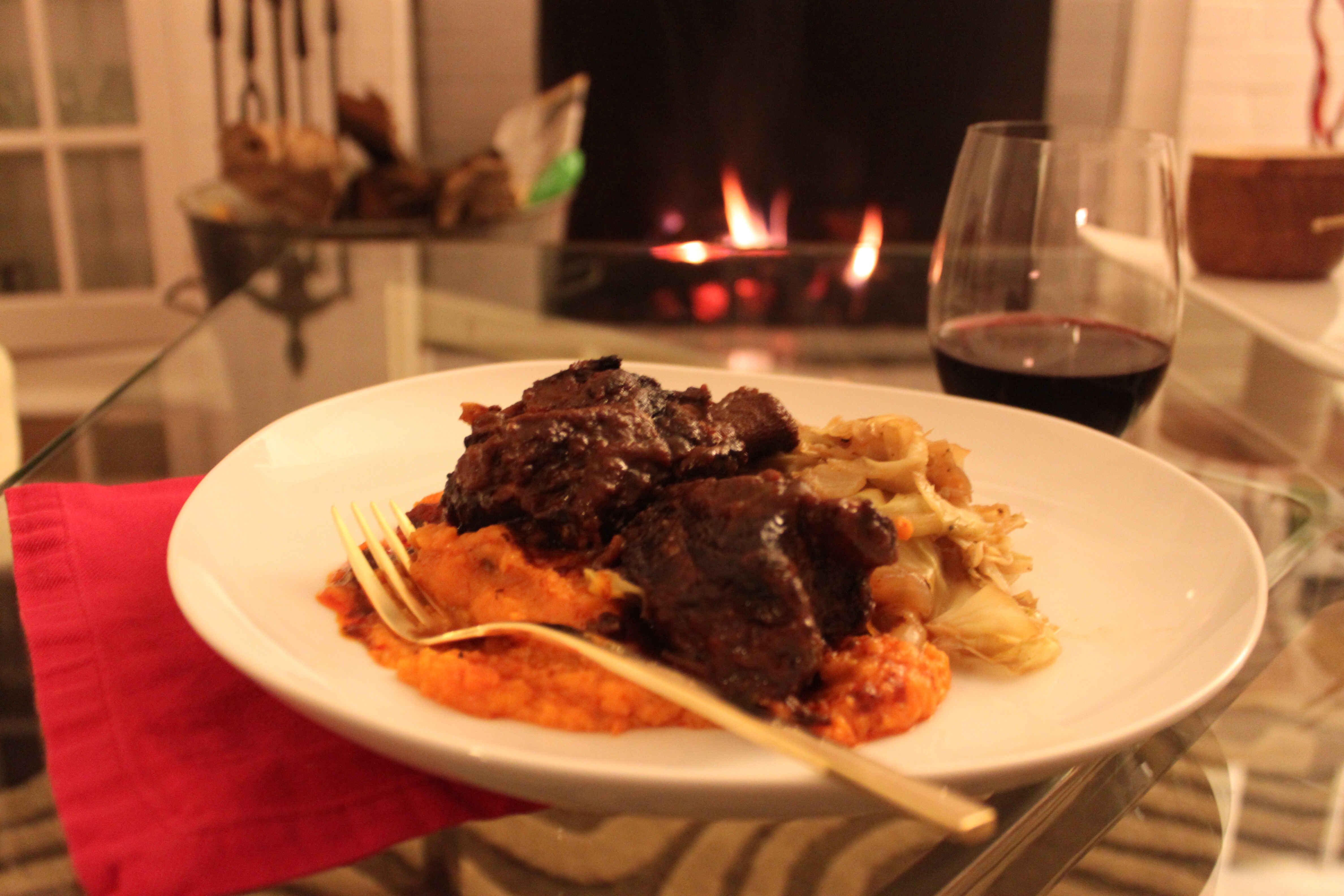 This recipe for Braised and Glazed Short Ribs is one of the more simple short rib recipes I’ve made. It has very few ingredients and can be made while multitasking. The extra three hours in the oven gives you an excuse for an afternoon movie, a nap or (let’s get real) last minute emails and PowerPoint corrections. I served the ribs with the most delicious Whipped Sweet Potatoes with Red Curry & Coconut Milk and braised cabbage with garlic, ginger and soy sauce.