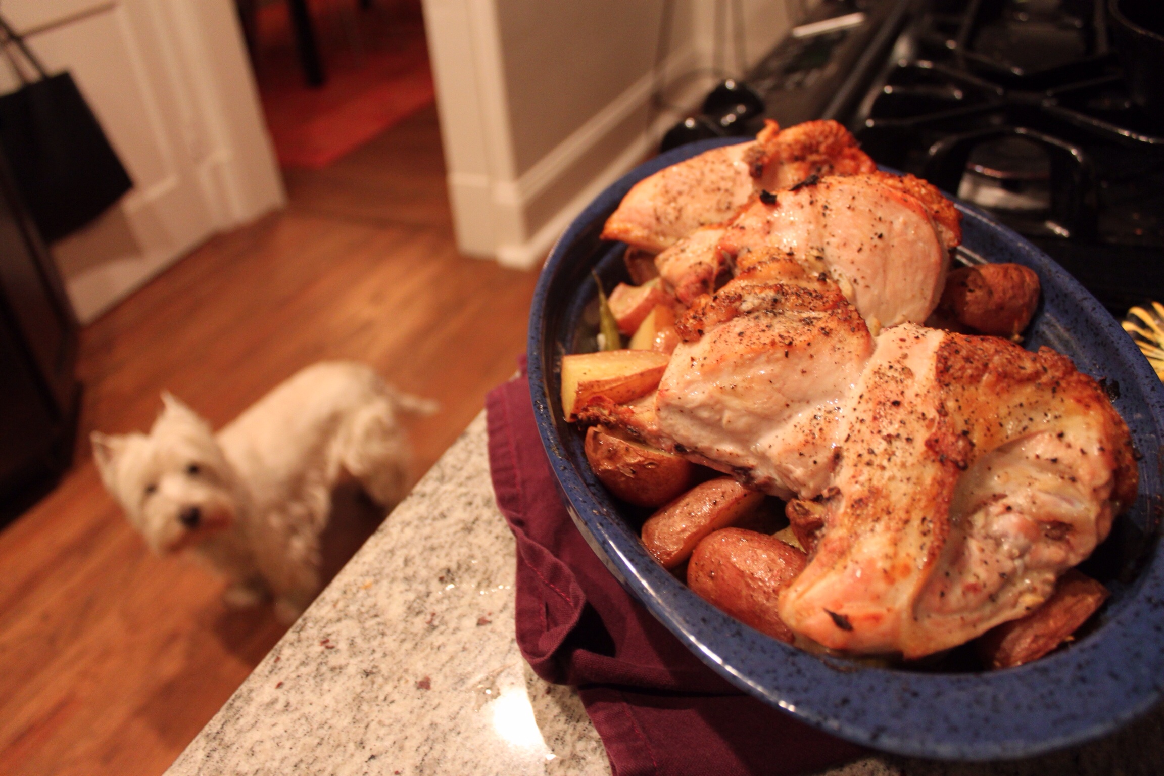 This recipe is an old standby and perfect for the chilly weather we have been dealing with. Turning the oven up to 450 is a welcomed task with very very cold hardwood floors. I actually made this dish on Friday night after work. I went into hibernation and ate the leftovers throughout the weekend. It paired well with the ice-cold red wine from my mud room floor (a new version on chilled red).