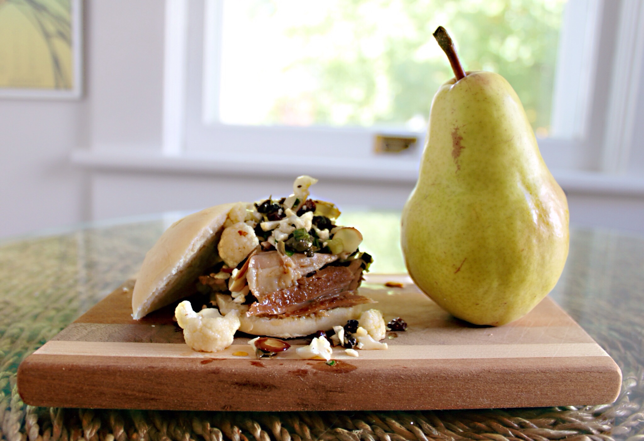 It’s a joke between my friends that ever since my friend Jessica moved away, we’ve been eating a lot of pork. It’s true – we’ve saved up a lot of pork recipes while entertaining and cooking with our kosher friend. Now that she’s gone, we send tipsy texts and devour pork noodle soups and slow roasted pork shoulder. Kidding aside, it’s the perfect time of year for slow cooking anything and this pear pulled pork is perfect on it’s own or with a tangy cauliflower slaw on a warm roll. This is pretty fancy for a tailgate but would impress plenty of friends at any gathering.