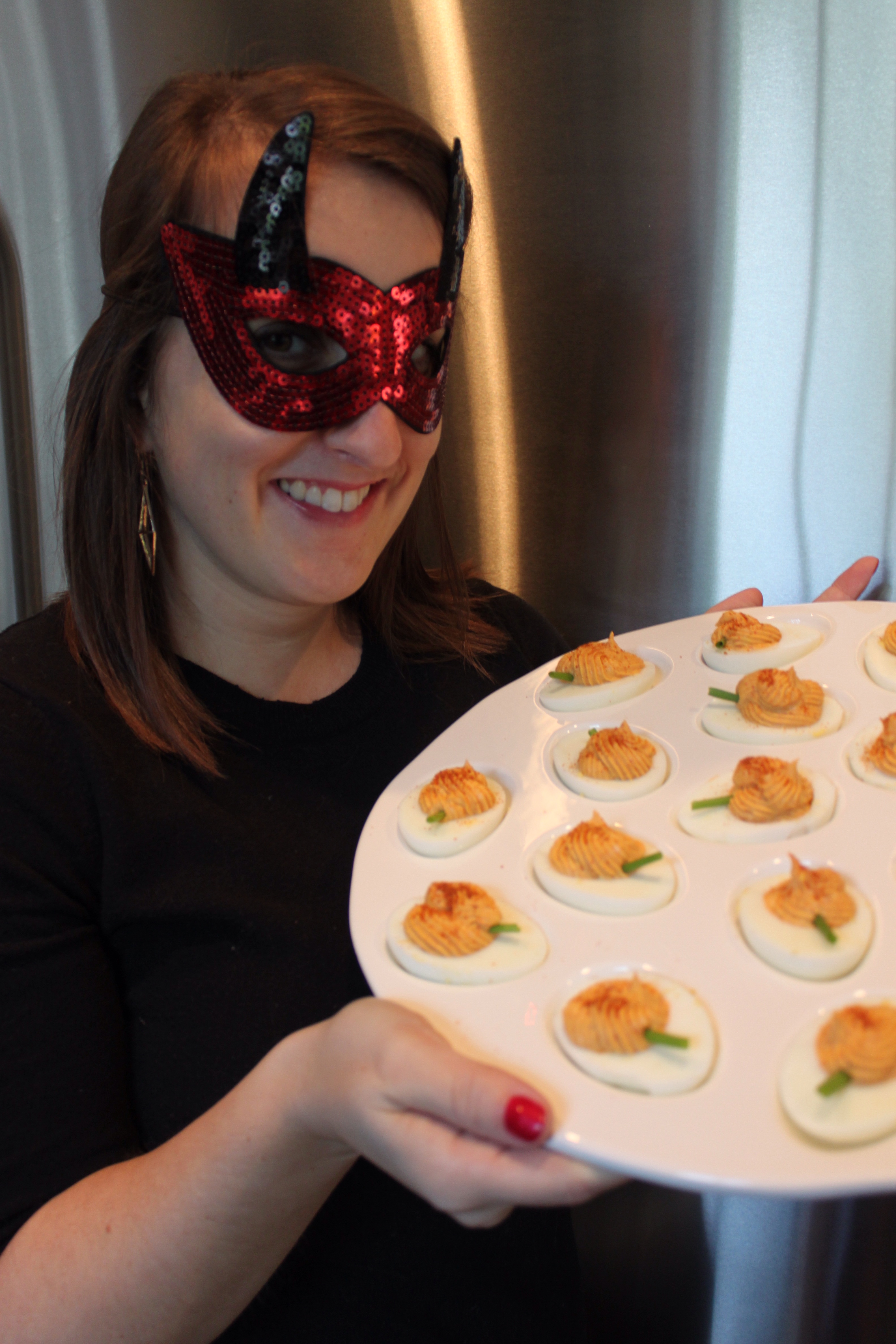 I’ve decided that deviled eggs are for for any season and any party. While one used to think they were only fitting for summer picnics, I’ve seen them dressed up for winter in caviar or truffles or perfectly decorated as tiny pumpkins with a little extra paprika for Halloween. This weekend they were a perfect starter before friends came over for Halloween chili by the fire.