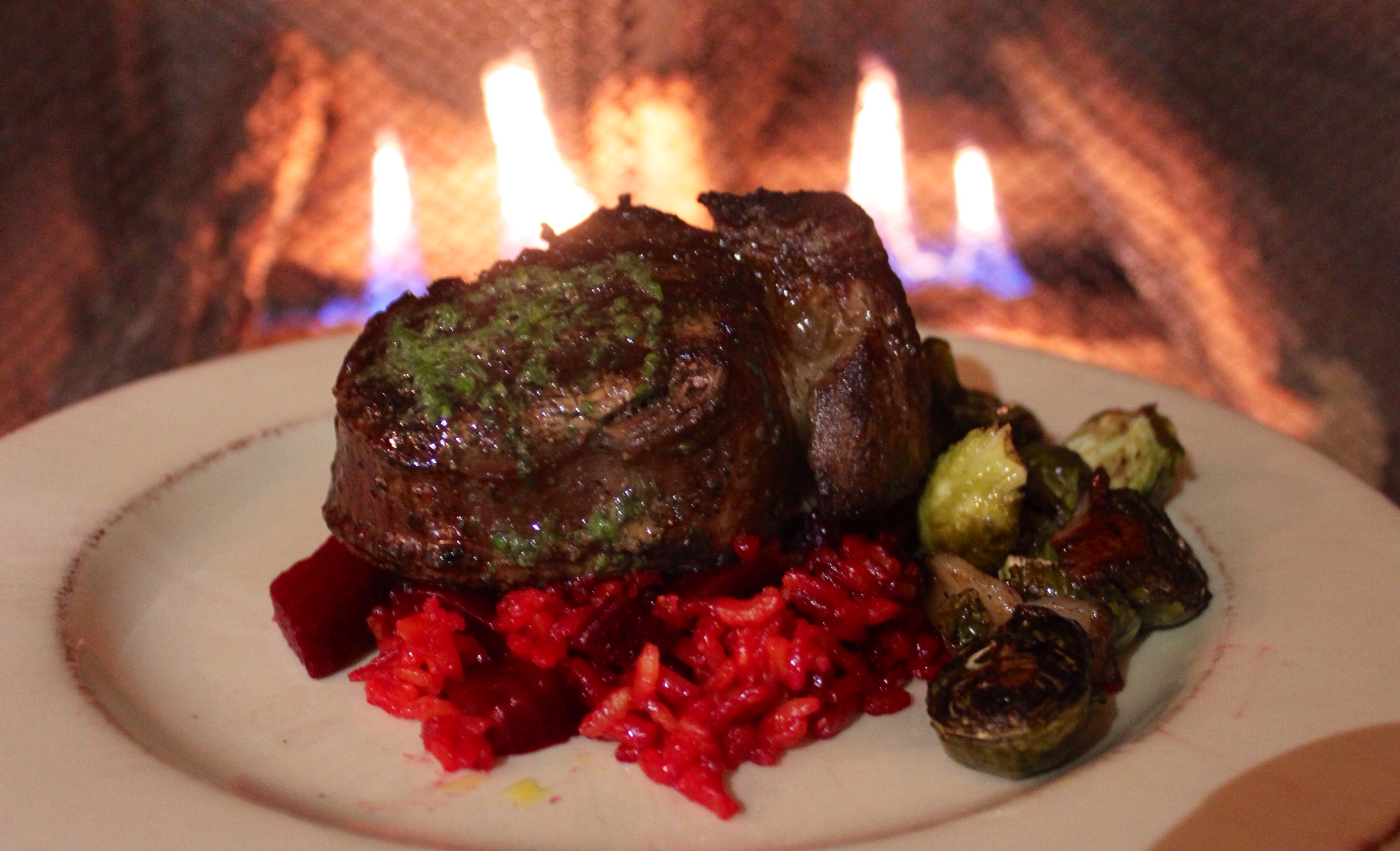 For dinner, I made grilled filet mignon steaks with an herb compound butter over beet risotto with roasted brussel sprouts. Not bad, right? After all, it’s 2015!