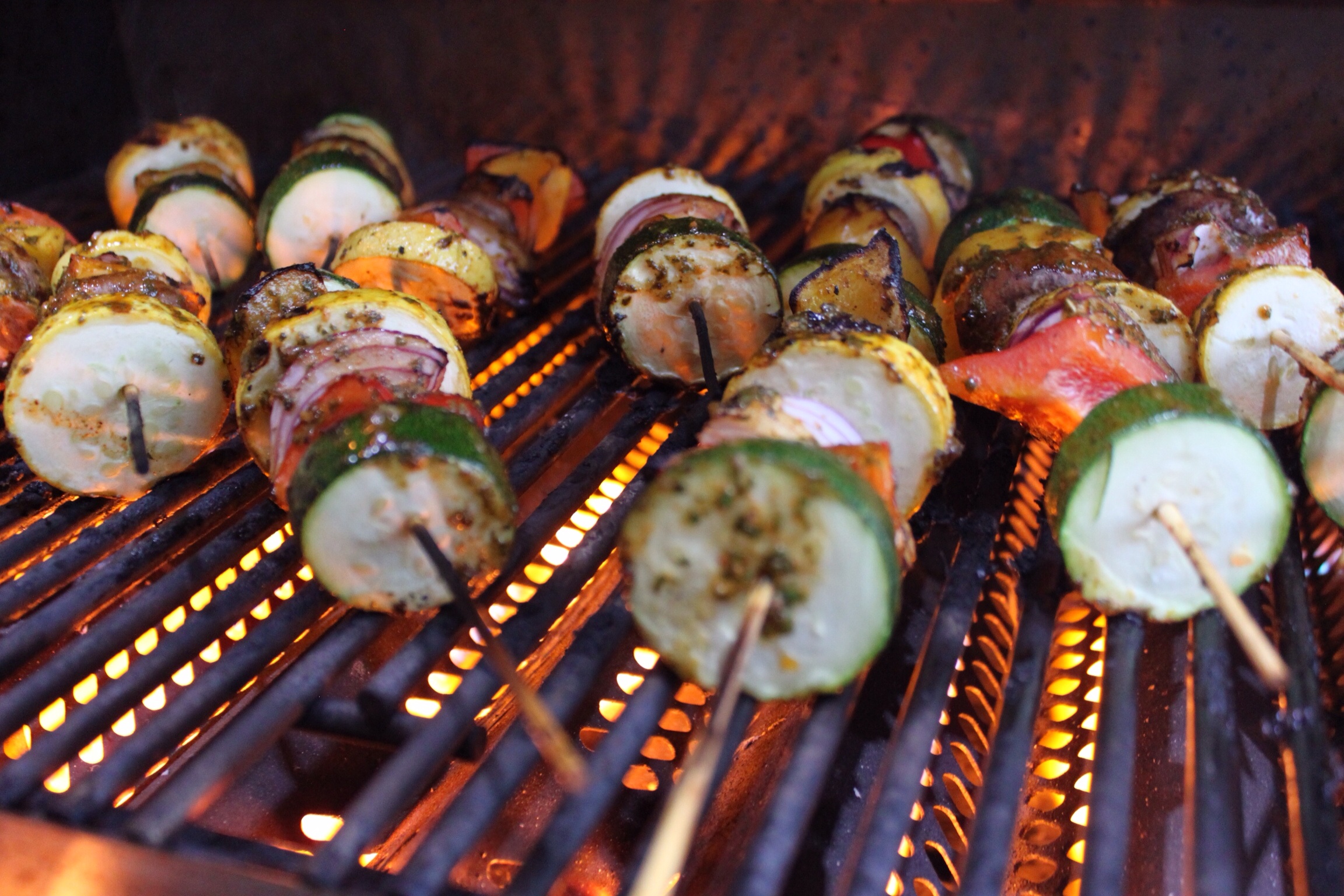 It’s starting to get to the time of the year when you can’t get through squash and zucchini fast enough. Grilling is a great way to pack a great punch with a spicy marinade. I skewered a variety of veggies – squash, zucchini, onion, peppers and mushrooms – and tossed them in a lovely Moroccan spiced marinade before grilling them charred with a nice fresh bite.