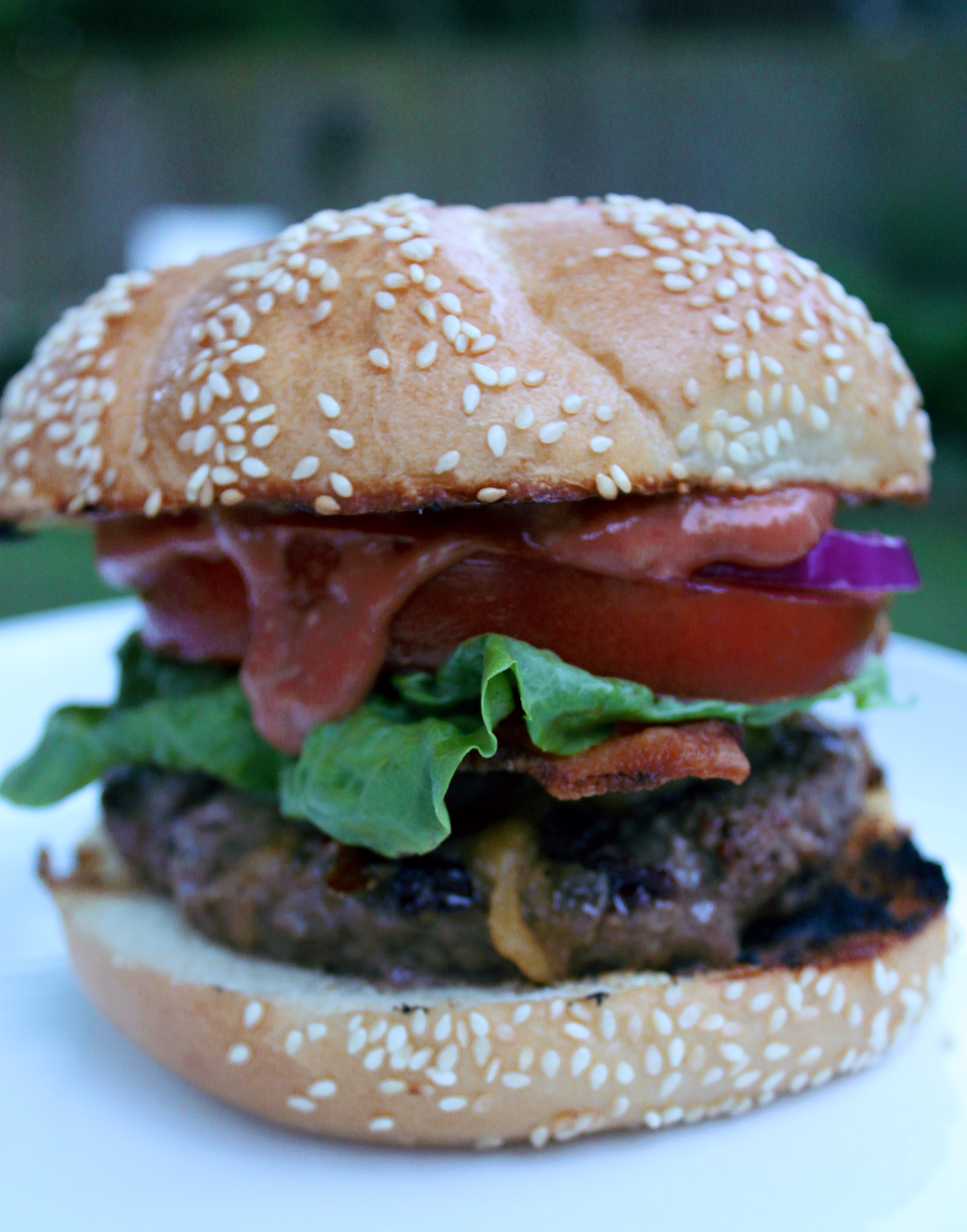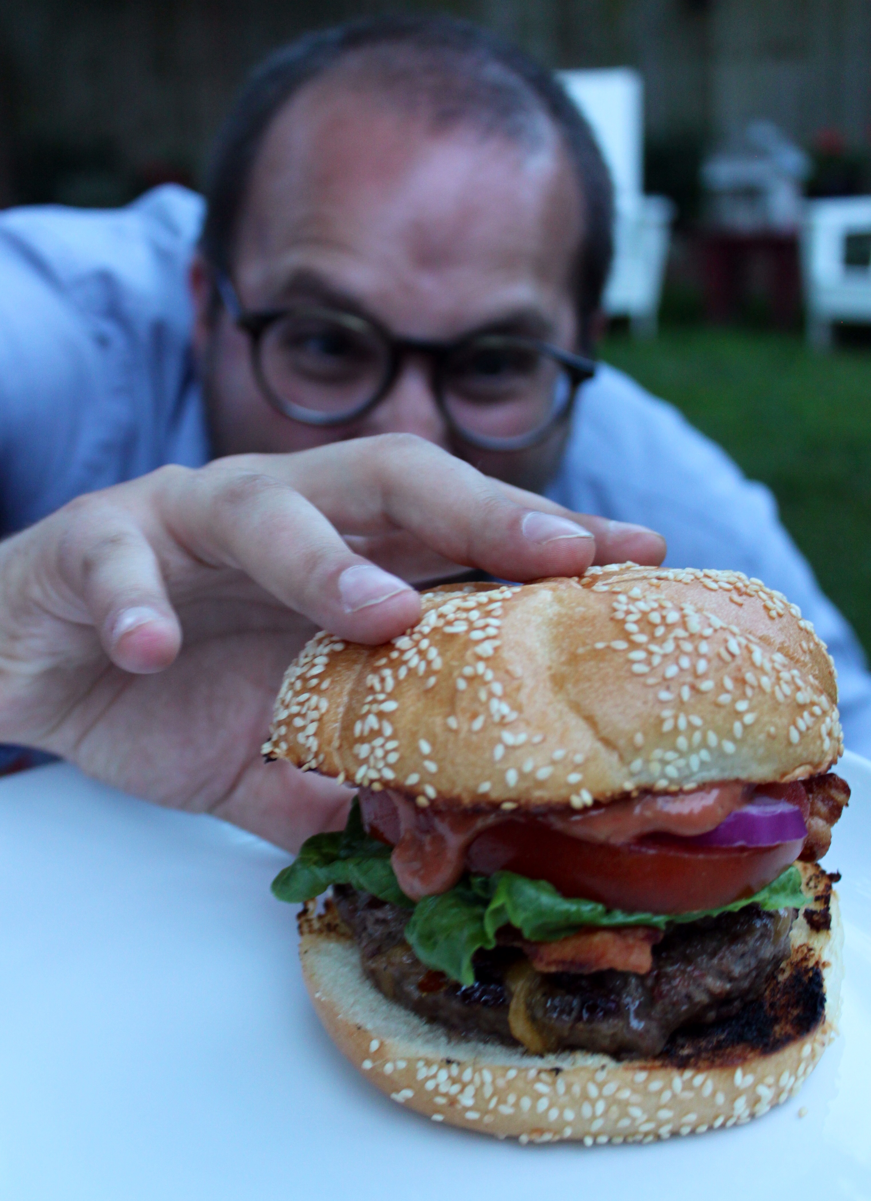 This year I prepared Bon Appetit’s June cover – Ralph Lauren’s Double Burger. As you can see in the photo, it’s pretty incredible. A heavy helping of homemade special sauce, a grilled slab of beef chuck and think cut bacon plus the summer’s best tomato. They were delicious and perfect for a picnic table dinner. And, soaked up plenty of rose.