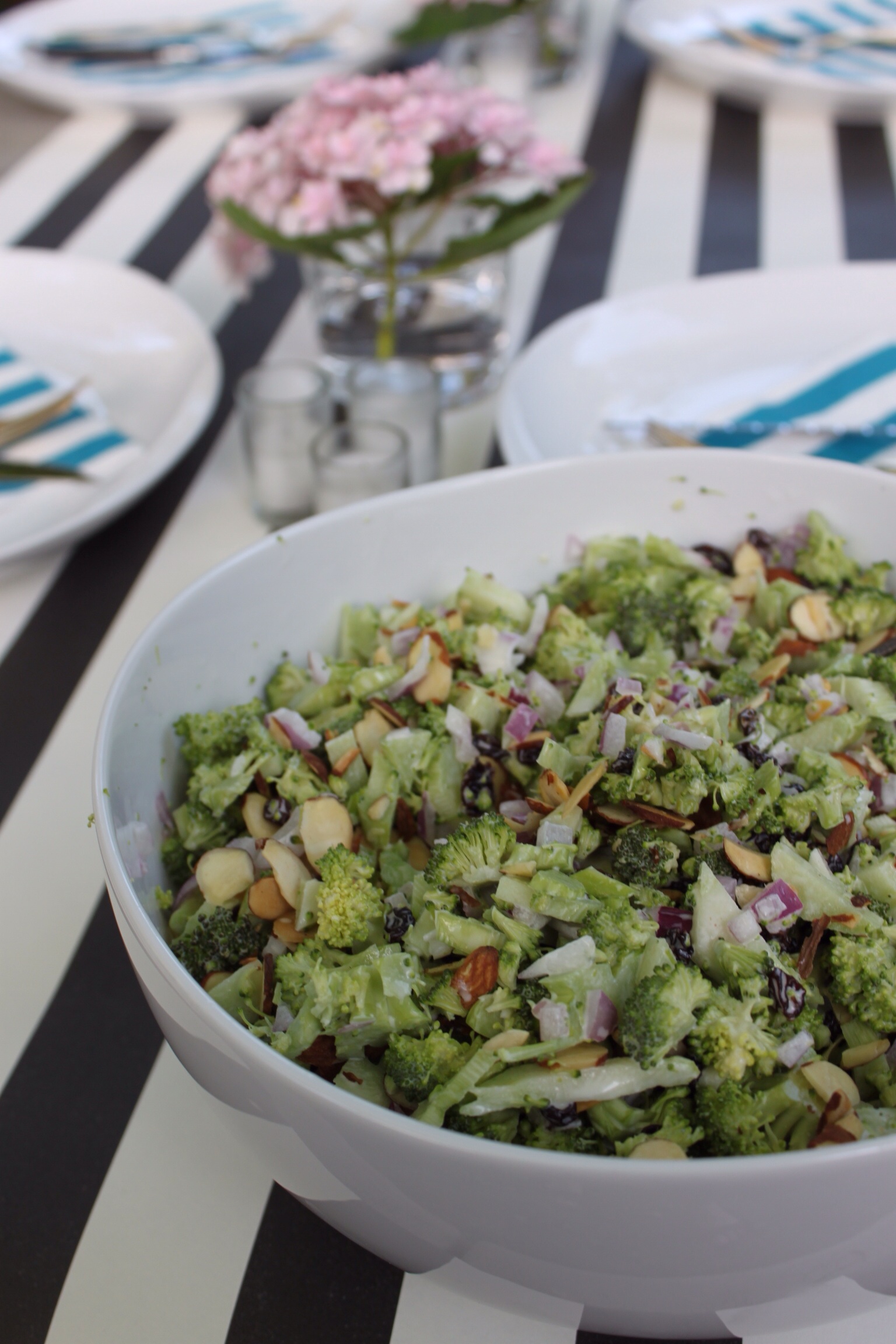 Toss the sliced broccoli with the almonds, cranberries and red onion in a large bowl. Meanwhile, whisk the dressing ingredients in a smaller one, with a good pinch of salt and black pepper. Pour the dressing over the broccoli (if you’ve skipped the stems, you might not want it all; I otherwise found this to be the perfect amount) and toss it well. Season well with salt and pepper to taste.