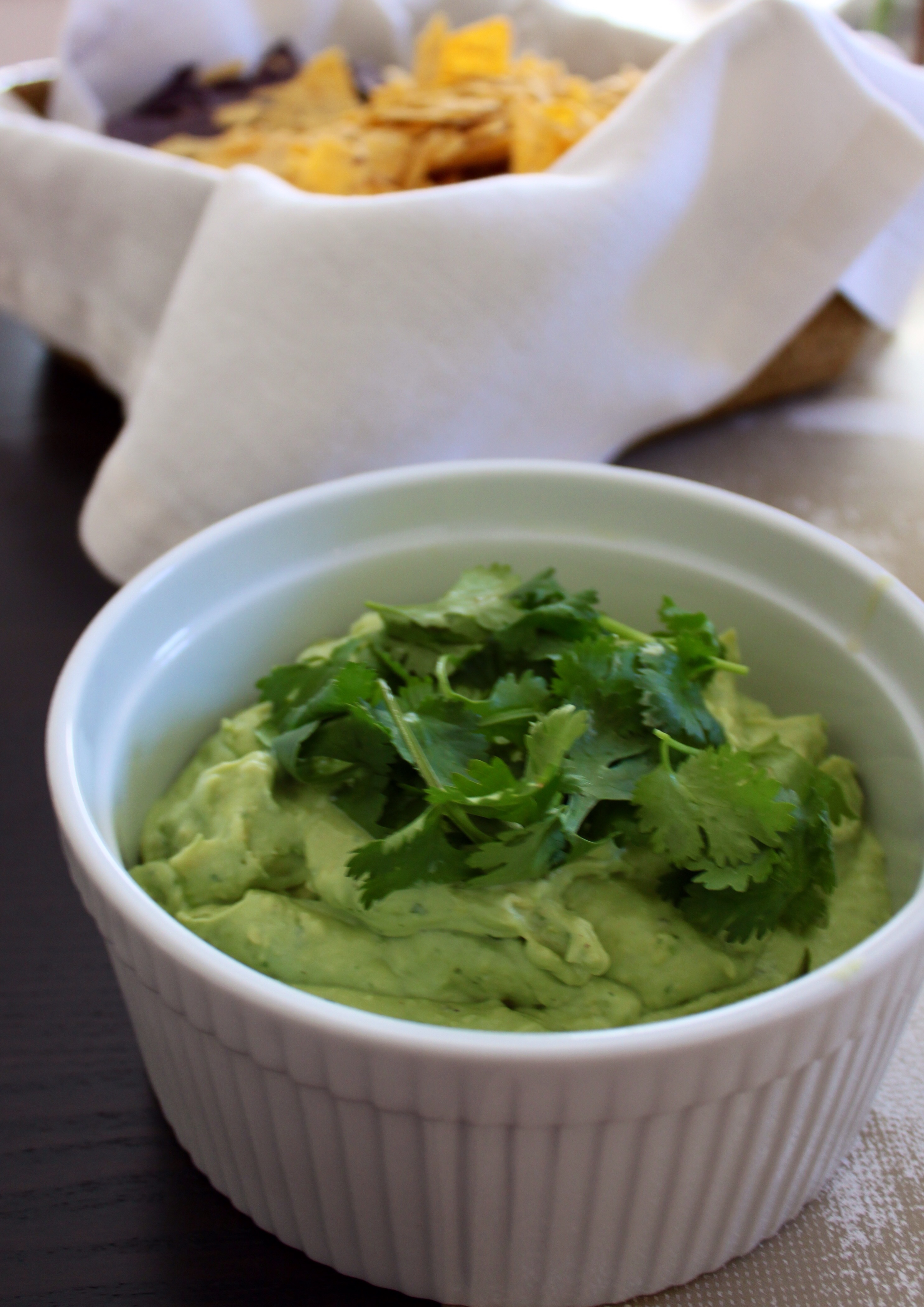Ok, this is the most awesome version of guacamole. Skip the onion and tomato and just pulse avocado with tangy sour cream. It’s so smooth and just as delicious as the traditional guacamole. And, easy too. Jump on it!